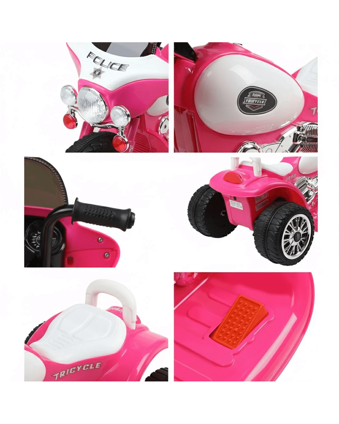 Let your little one experience the excitement of being a policeman/ policwoman with the ride on police motorcycle. The softgrip handle bar and acceleration pedal to control the forward and reverse movement give your child control and a realistic driving experience. It comes with some cool entertaining features that will allow your child to have hours of fun. The anti-slp tyres also ensure safety while your children are exploring the area in a fun way. Get the ride on police motorbike today and watch your child's imagination run wild!