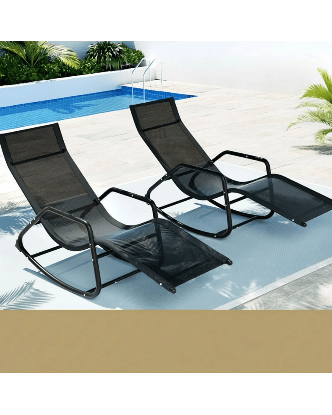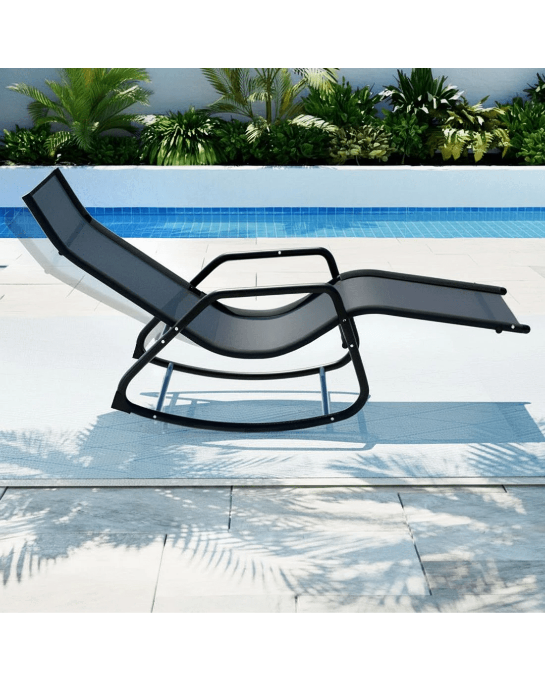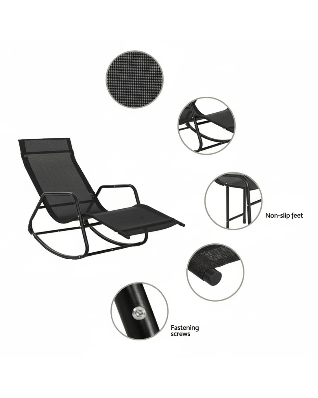Sold by Aisle SixGardeon Sun Lounge Rocking Chair Outdoor Lounger Patio Furniture Pool Garden - Black