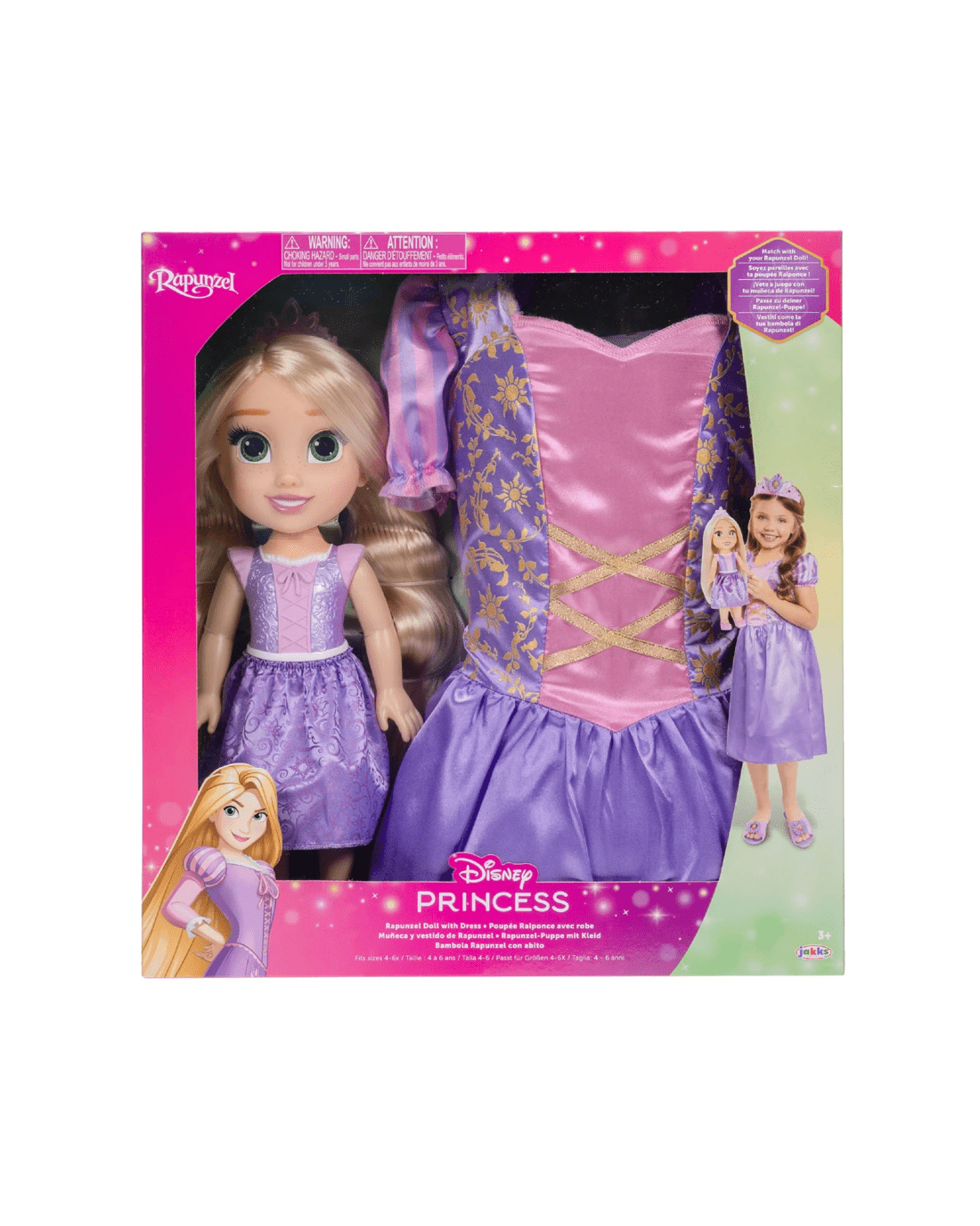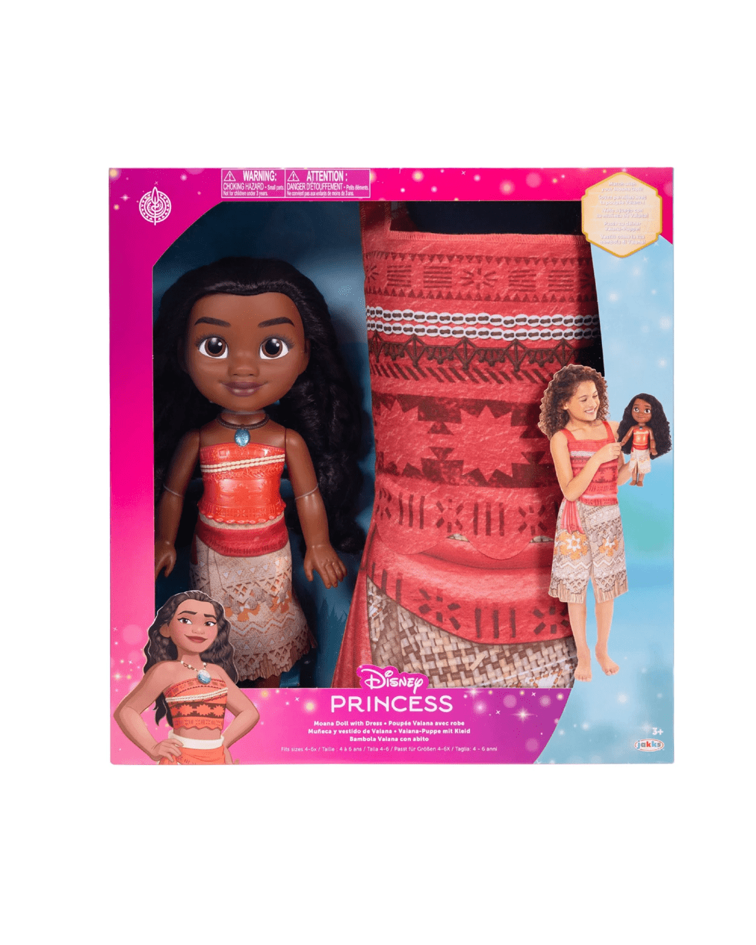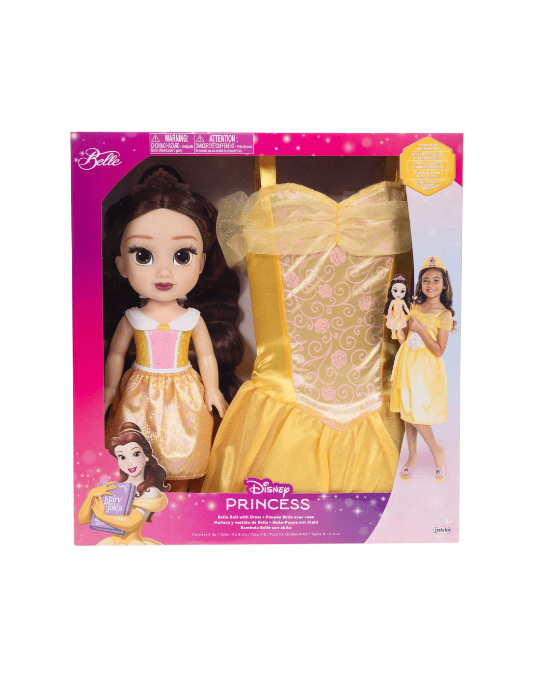 Bring home the joy of your favourite Disney stories with these delightful JAKKS PACIFIC Doll and Costume Sets. Your child will be captivated as they join beloved characters like Belle, Rapunzel, Anna, Elsa, Moana or Ariel for hours of imaginative play. Each set features a highly detailed 38 cm doll and a beautiful matching child’s dress, so little ones can dress up and create magical adventures hand in hand with their chosen princess. With poseable limbs and soft brushable hair, these sets invite creative storytelling and endless fun. Make every day a fairy tale and watch your child’s confidence grow as they become part of the story. Ready to start the magic? Choose your favourite princess today.Features