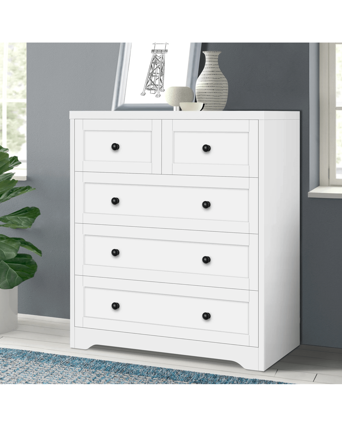 Sold by Aussie Union GroupAlfordson 5 Chest of Drawers Hamptons Storage Cabinet Dresser Tallboy - White