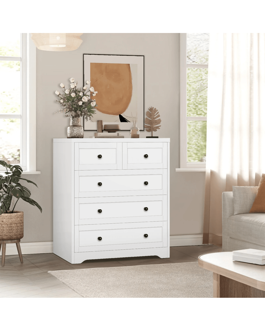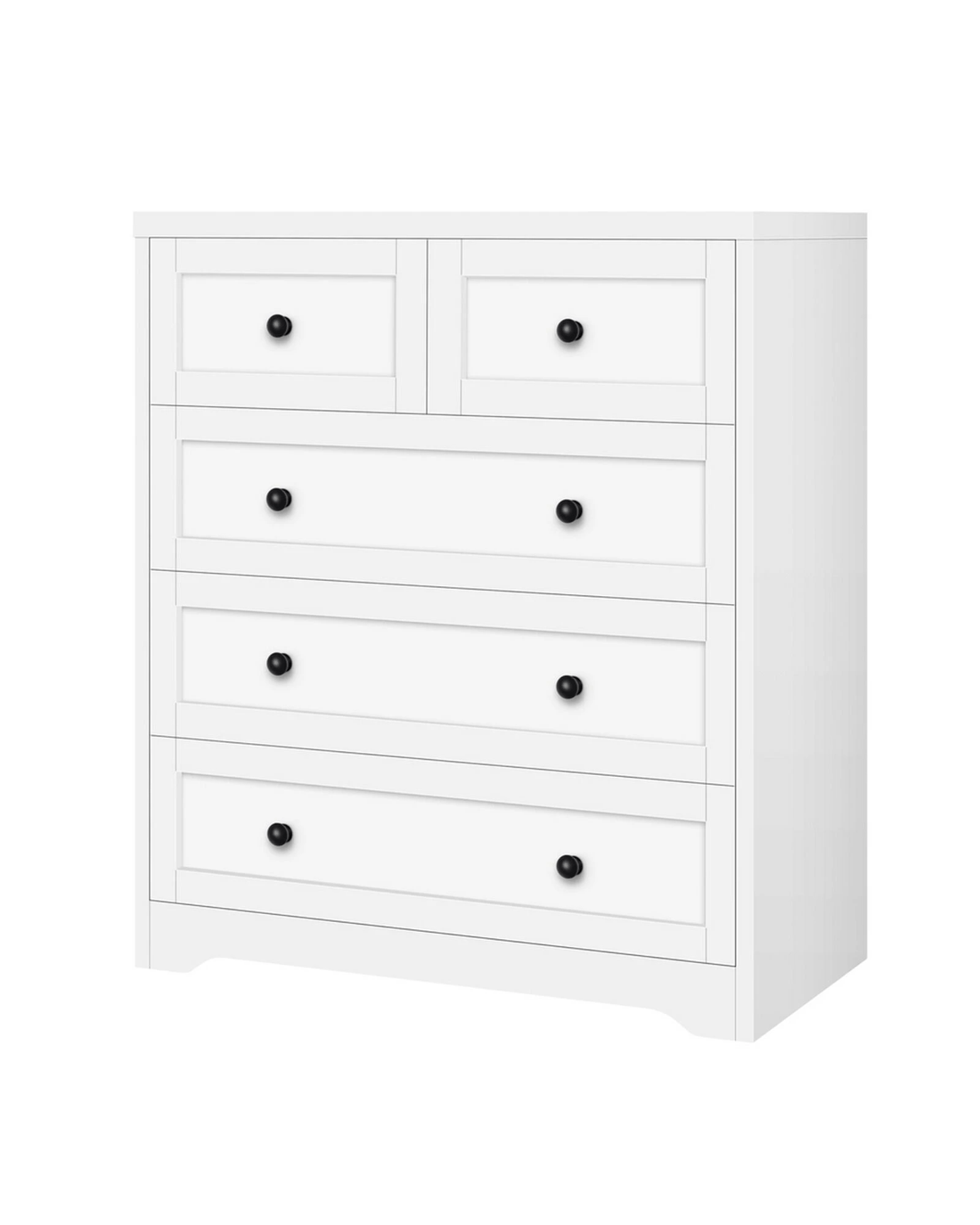 Not only will it look stylish, but it will also give you a maximum amount of space to better organize your surroundings. Featuring 5 spacious drawers, it provides ample storage so that you can designate areas for different items and those items you store away in the drawers won't gather dust. Essentials like a lamp, books, an alarm clock and photos of your loved ones can also be put on the top of chest of drawers.