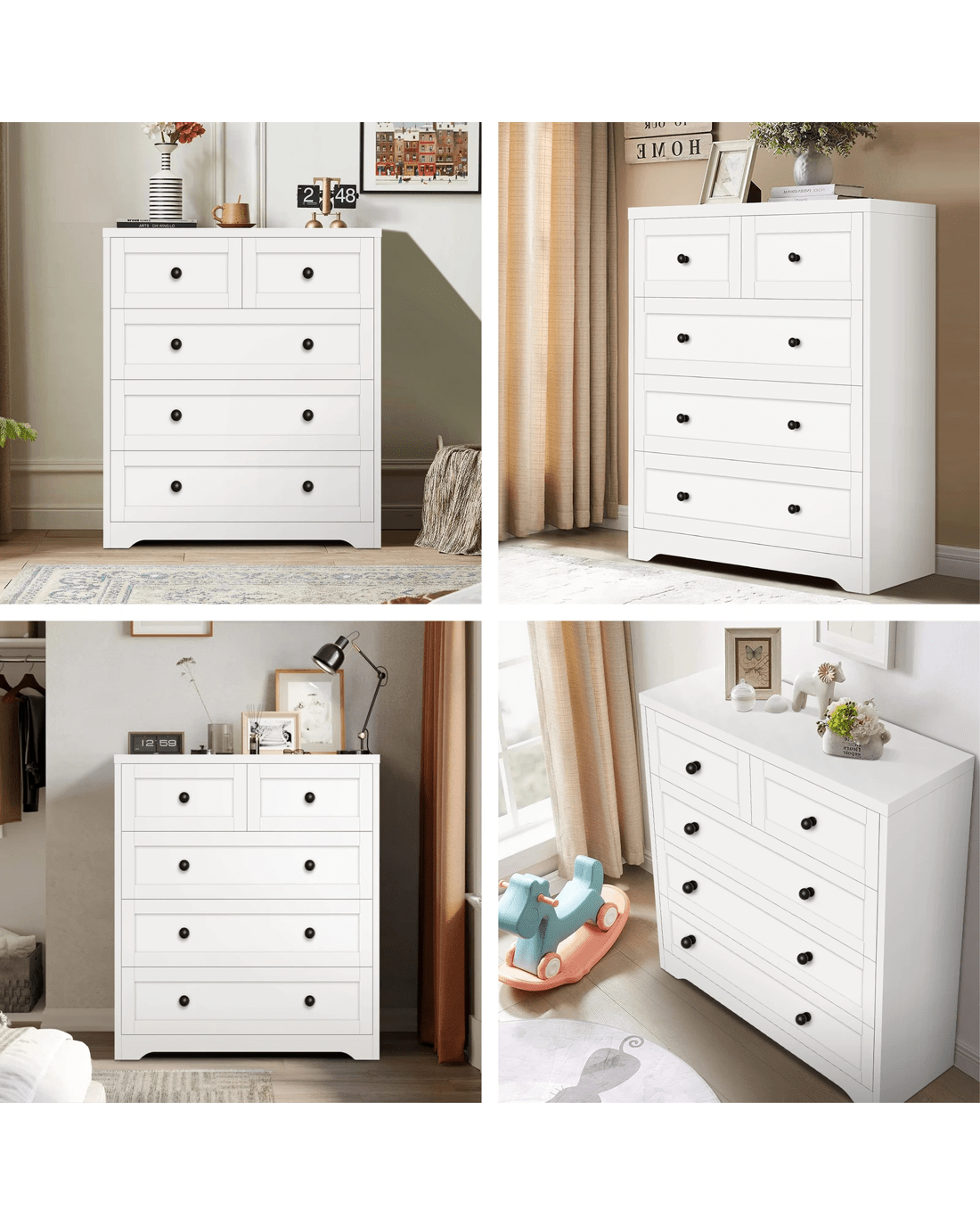 Made of superior E1 grade and 15mm thick particle board, this chest of drawers is designed to be highly secure. To add extra stability, an upgraded anti-tip kit is equipped for the linkage between the cabinet and the wall. Unlike some other sellers, we have no compromise on materials Use - stead of flimsy paper finish, our chest of drawers is well made with melamine finish. It is not only easy to maintain, but also long lasting.