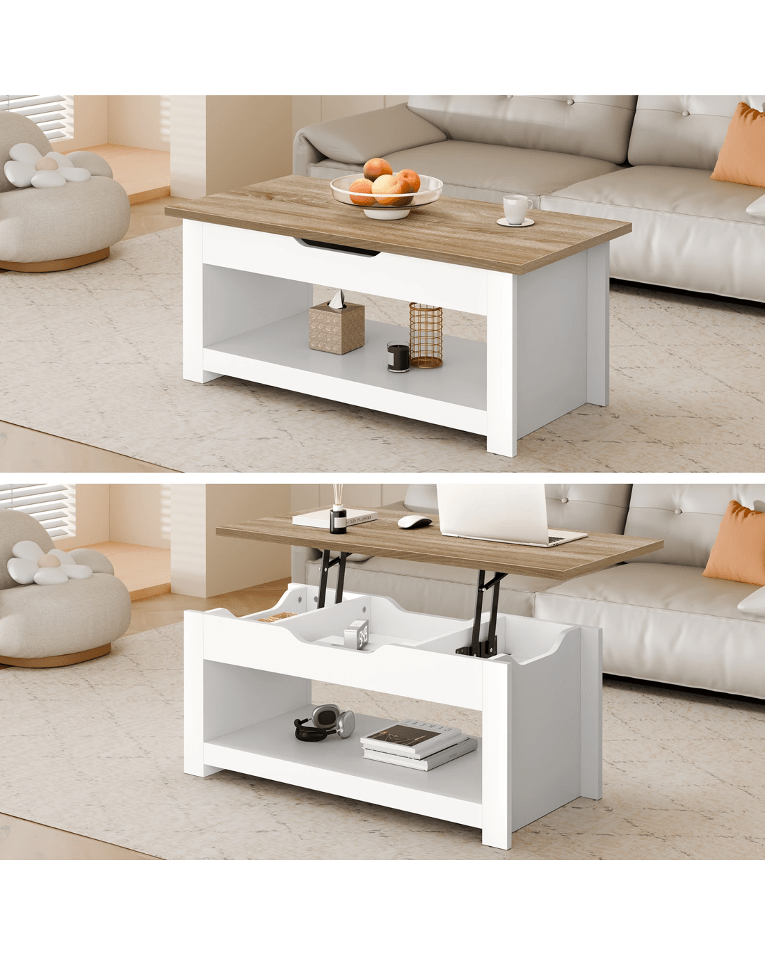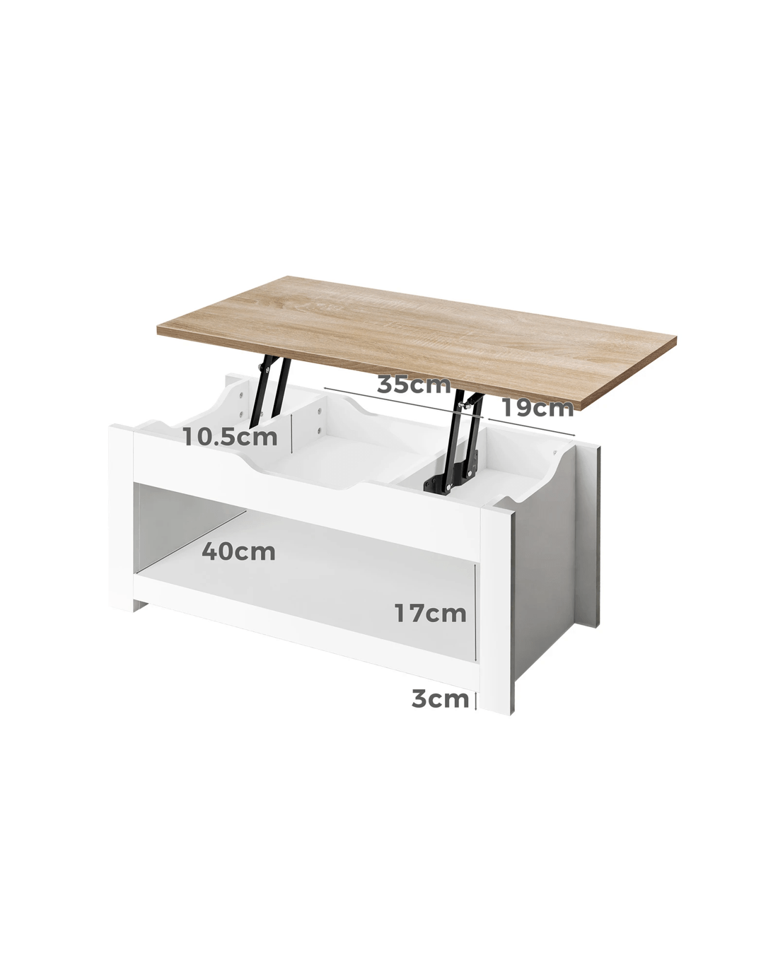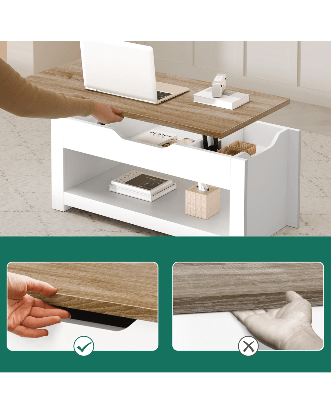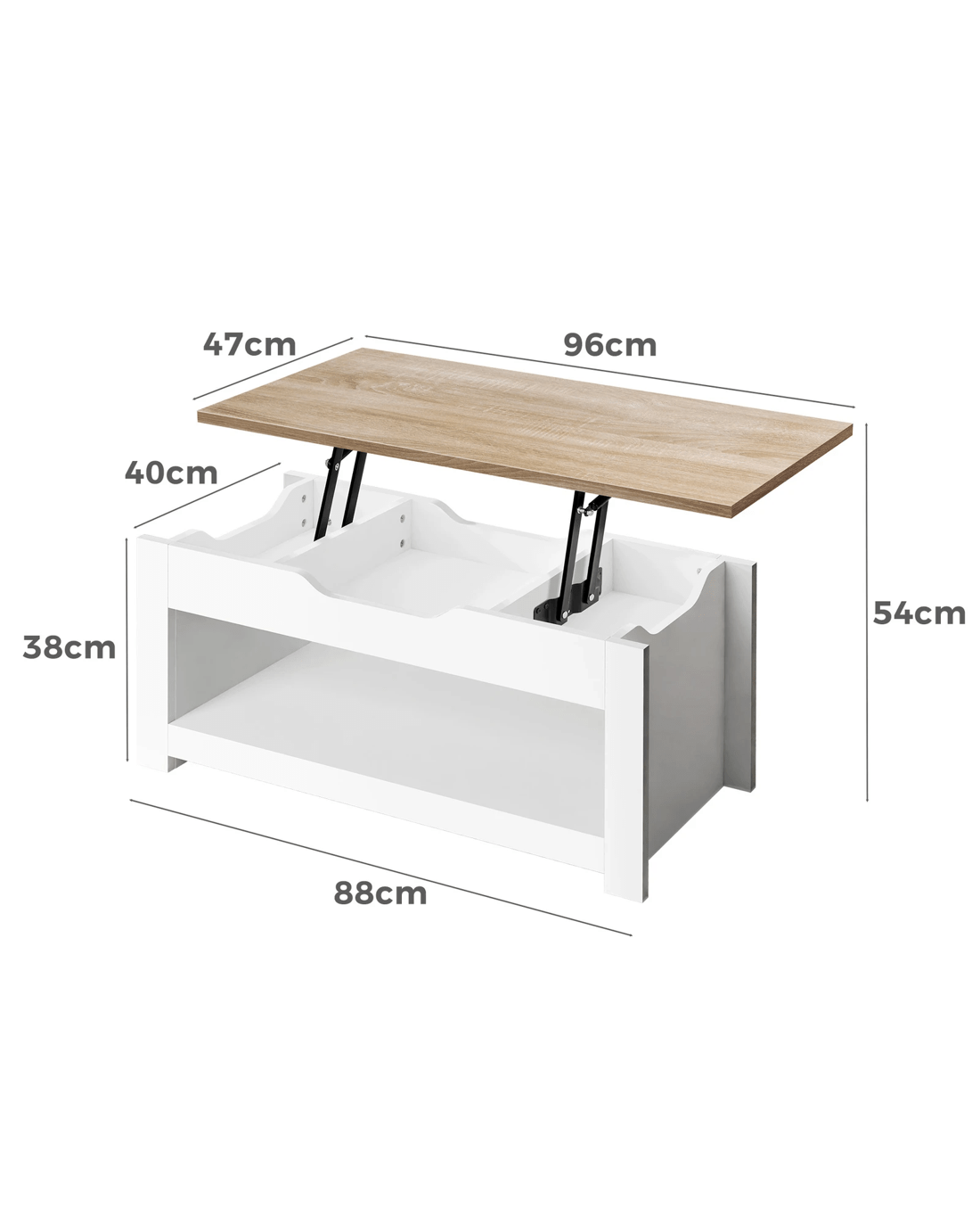 Crafted from superior E1 grade and 15mm thick particle board, our coffee table is designed to be highly durable. Unlike some other sellers, we have no compromise on materials Use - ll made with melamine finish, it is waterproof, anti-scratched and easy to maintain and clean. Eqquiped with metal gas lift instead of spring lifting mechanism, ours hardware ensures strong durability and for long lasting Use - p;