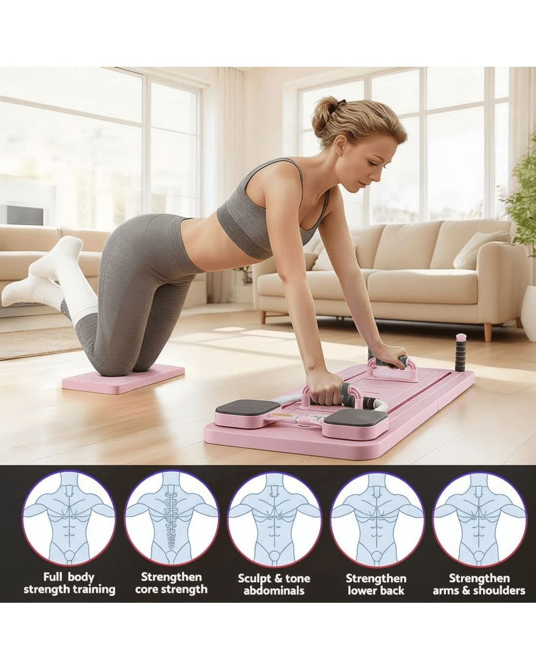 The Multi functional fitness board delivers a complete full-body workout, enhancing strength, flexibility, and posture right at home. Its compact, space-saving design is ideal for small spaces, offering studio-quality results without bulky gym gear.