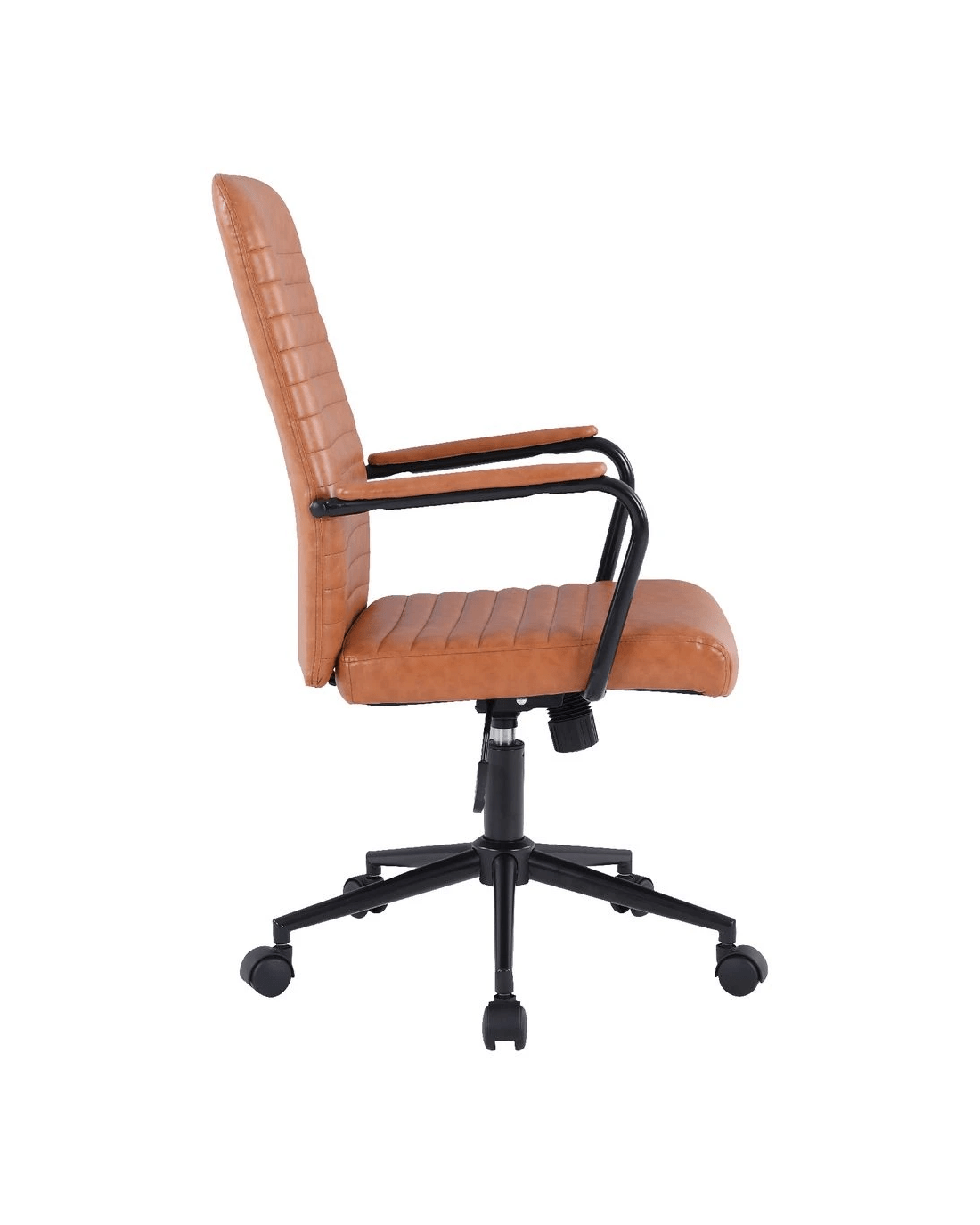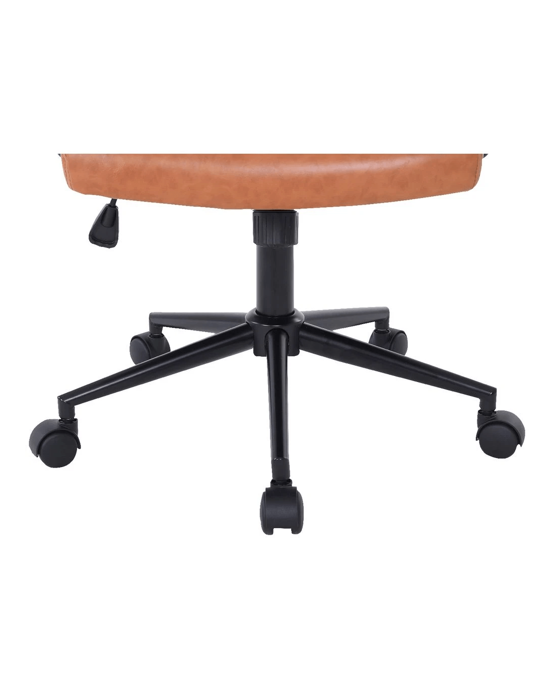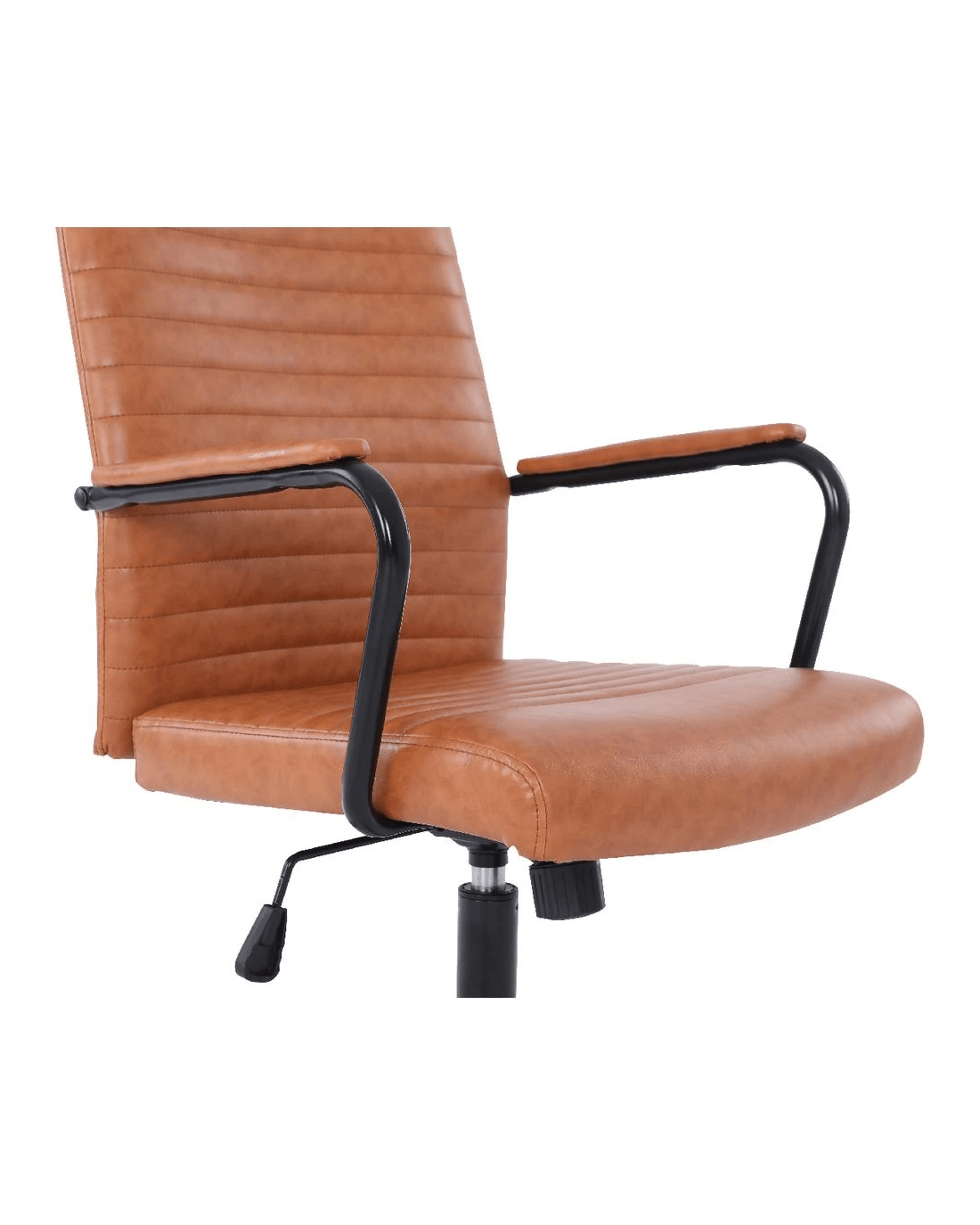 • The backrest and seat are covered in PU leatherette, while the frame and base have a sturdy metal construction.