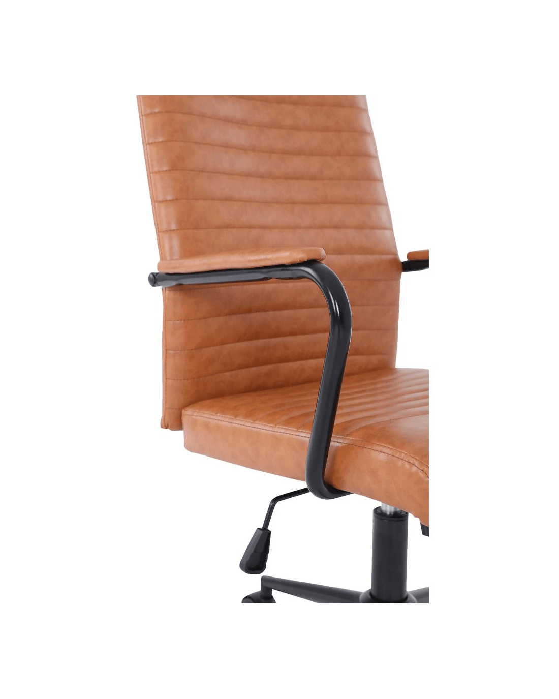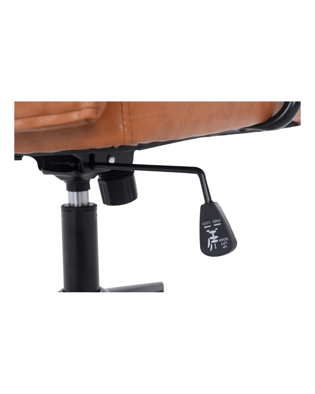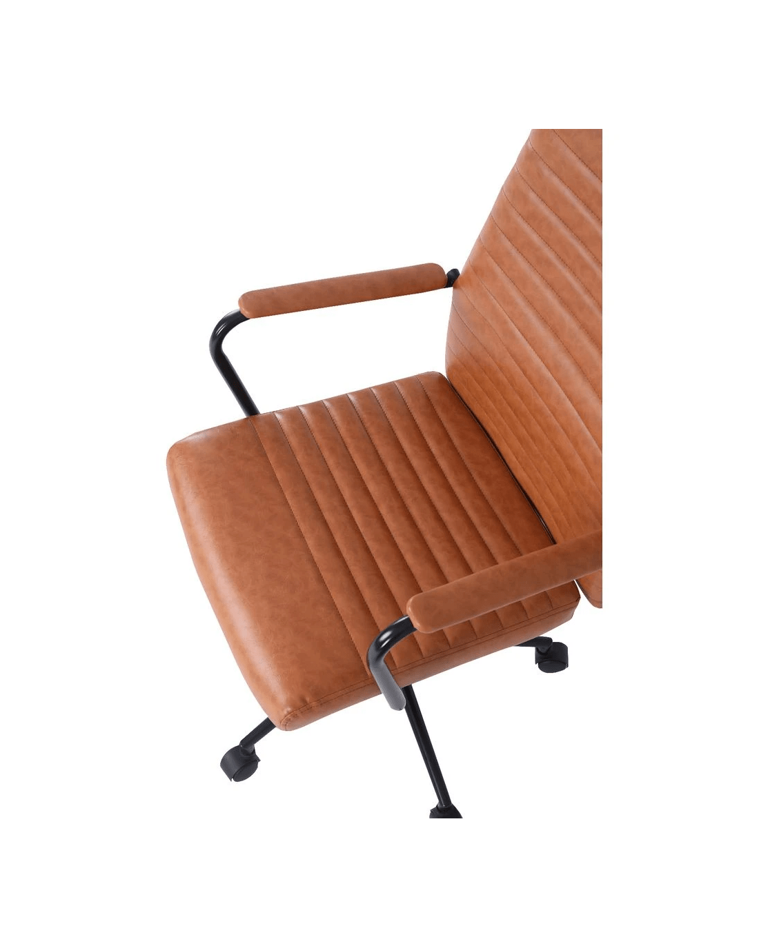 • The backrest and seat are covered in PU leatherette, while the frame and base have a sturdy metal construction.
