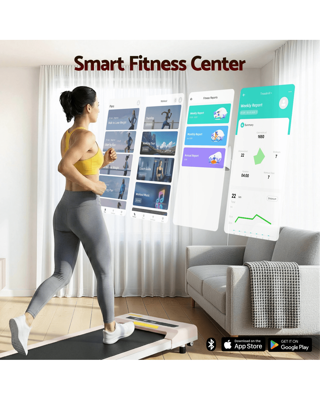 For a truly effective approach to weight loss and toning, our Everfit Walking Pad is your perfect companion. Compact and sturdy, the walking pad allows you to perform essential cardio exercises within the comfort of your home. It is foldable, easy to move, and comes ready to hit the ground running – no assembly required. Controlled by either the companion app or remote control, set up speeds of between 1km/h and 10km/h and monitor speed, time, distance and calories. Its powerful and energy-efficient motor produces smooth and seamless operation and the anti-slip belt phone holder makes your session a comfortable and controlled experience. The 360mm non-slip running belt uses an enhanced shock control system to help reduce the risk of joint injury, making the walking pad suitable for adults and seniors. When all the hard work is done, easily fold the compact walking pad and store away. Other great features include smooth wheels for easy mobility for entertainment while exercising. For health results that matter, our fitness walking pad is the one to run to.