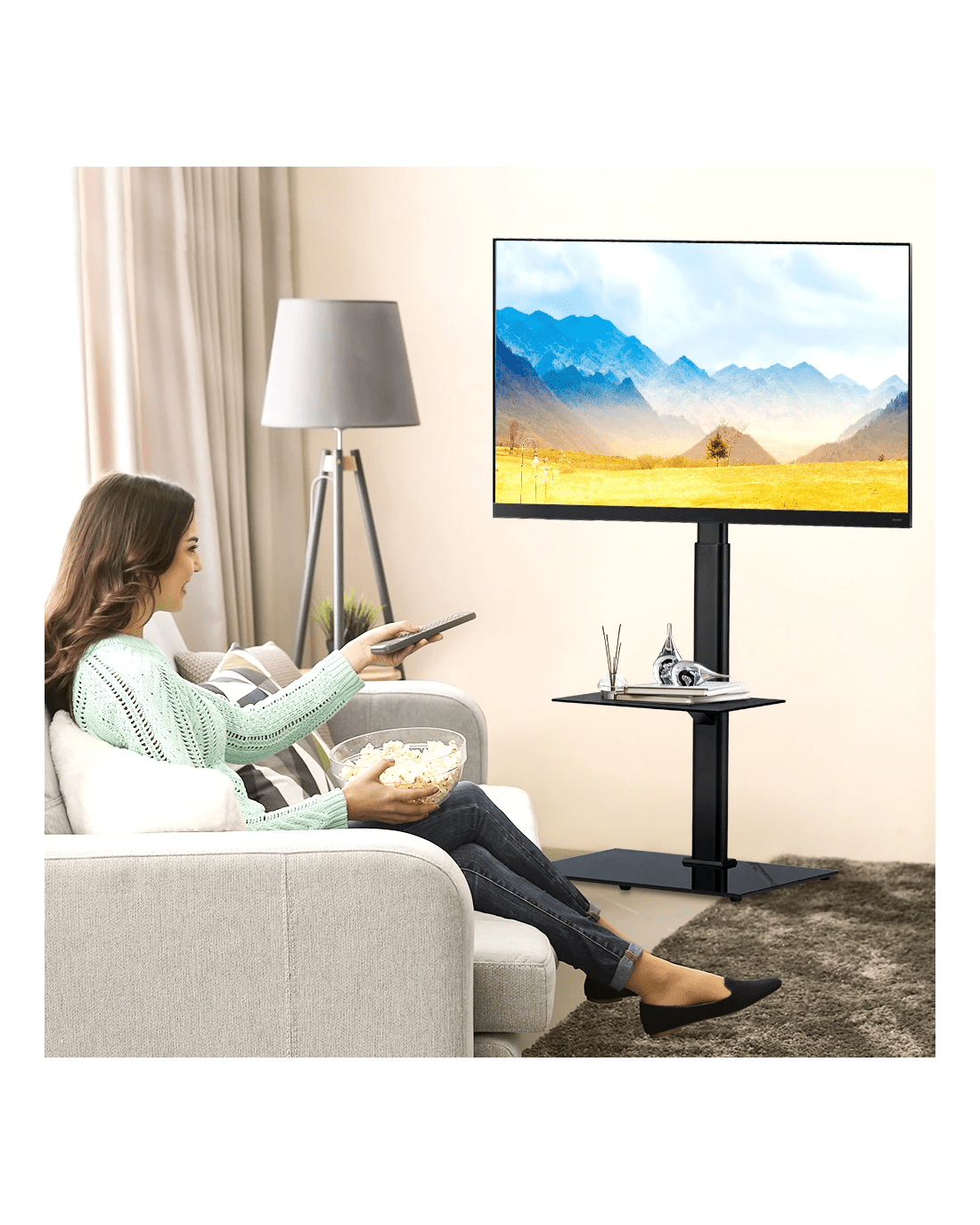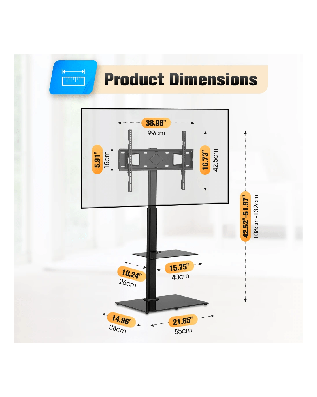 Ever struggled to find the perfect spot for your TV? Wall mounting is a hassle, not to mention the damage left behind, while bulky TV cabinets take up too much space. Our ZUNI TV floor stand is the perfect solution-sleek, sturdy, and flexible, designed for 32"-65" TVs up to 40kg and VESA 100x100mm to 600x400mm. With four pillar heights and three TV bracket positions, you get 12 configurations (108-132cm) to find that ideal eye-level viewing angle-no more neck strain, just pure comfort. Whether you're relaxing on the couch or dining at the table, the 卤25掳 swivel lets you adjust your screen for the best view. Built for stability, the 8mm tempered glass base and heavy-duty steel pillar keep your TV securely in place, preventing wobbling or tipping. And with smart features like cable management, safety locks, and non-slip pads, your setup stays neat, tidy, and secure. No stress over assembly-clear instructions and labeled hardware make setup quick, easy, and hassle-free.