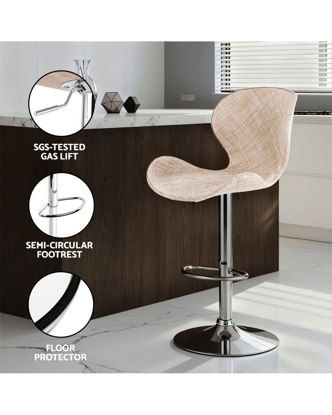 Experience superior comfort with a curved wing design and a premium PE rattan seat. The height is adjustable (90-112cm) using a durable gas lift cylinder, while the sturdy metal construction ensures a 120kg capacity per stool. The semi-circular footrest ring improves stability and relaxation. Anti-slip floor protectors prevent scratches, making these stools perfect for both indoor and outdoor use.