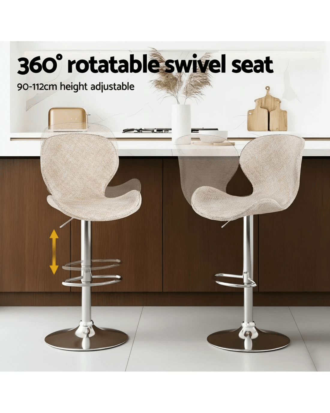Sold by Aisle SixArtiss 4x Bar Stools Kitchen Swivel Gas Lift Counter Chair Wing PE Rattan - Beige