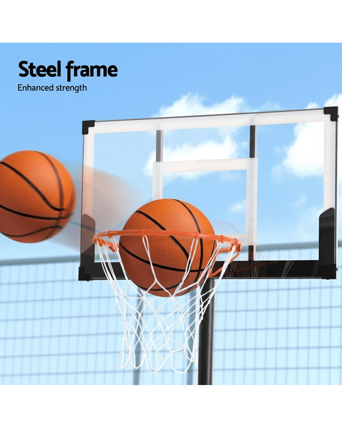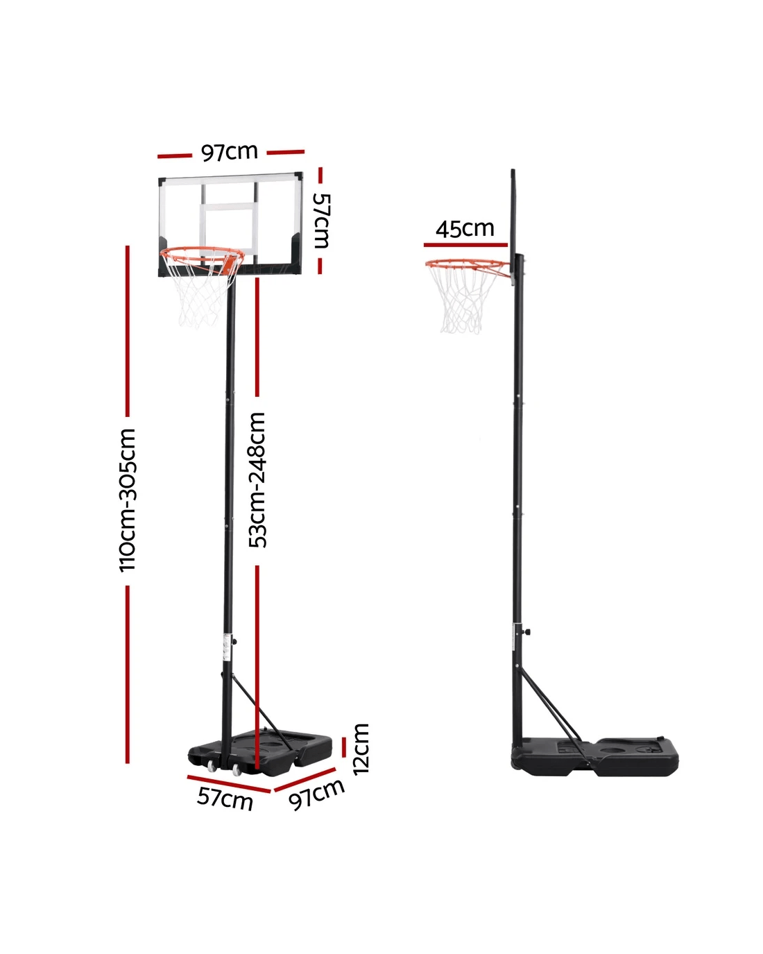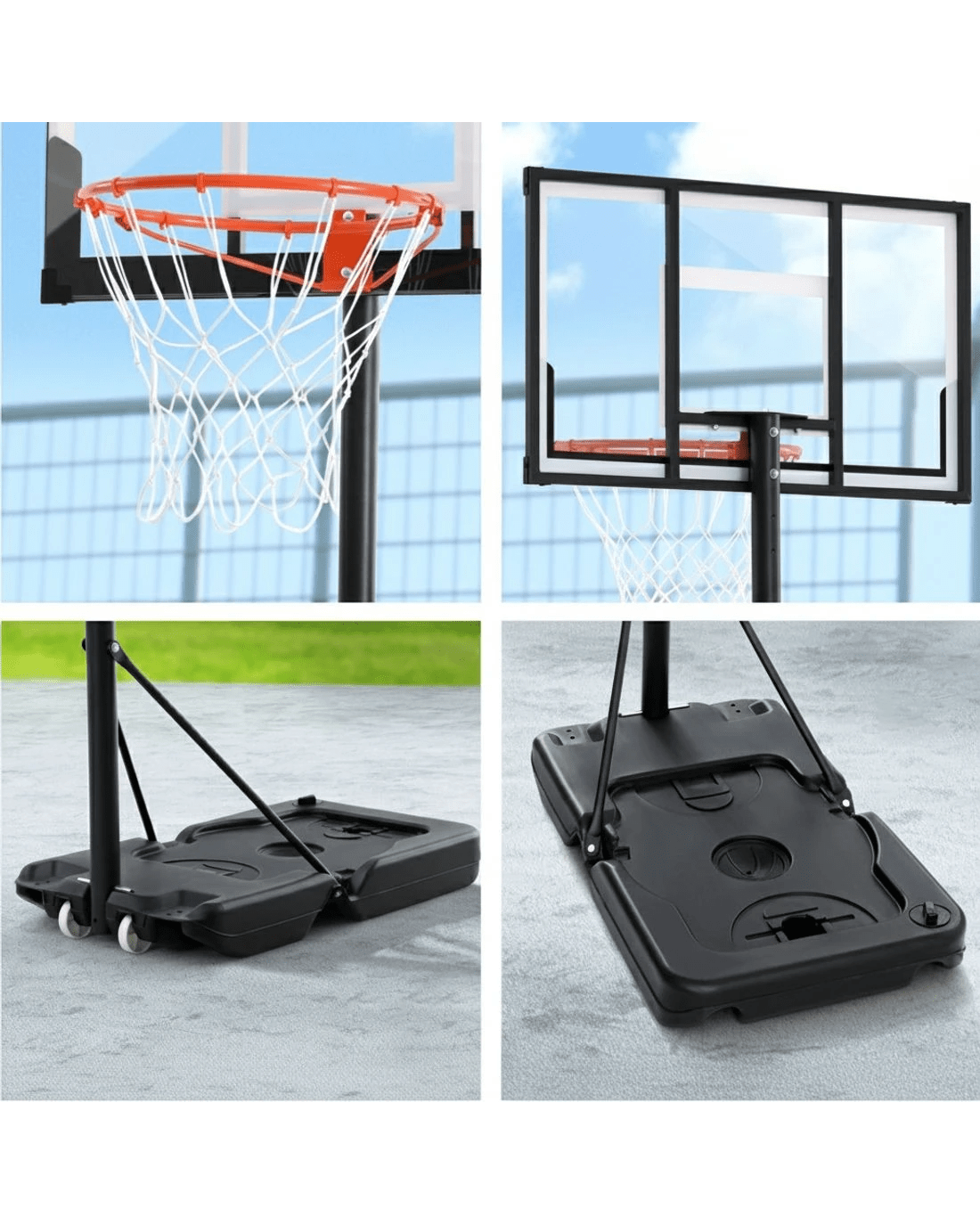The Everfit Portable Basketball Hoop delivers versatile play with height adjustment from 1.1m to 3.05m, ideal for skill development. Built with a high-impact PET backboard and weather-resistant net, it suits Australian outdoor conditions. The wheeled base allows easy movement between locations, while the fillable PE base provides steady support. Durable steel frame and 16mm rim ensure safety during intense games. Straightforward assembly gets you playing faster.