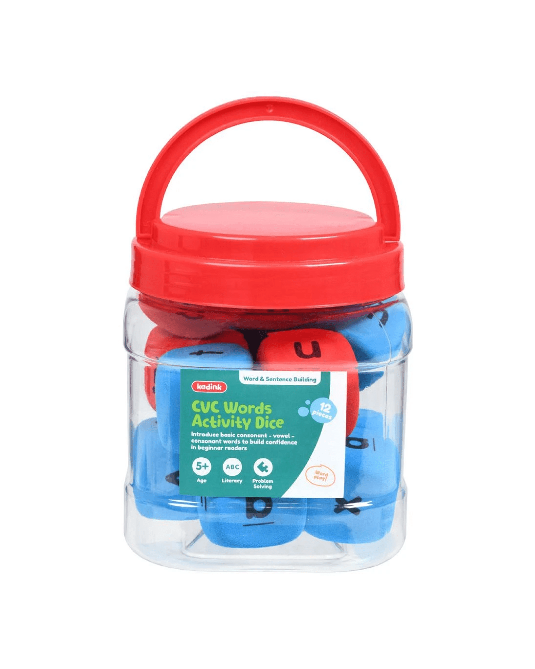 Improve your literacy and speaking skills with this Kadink CVC Words Activity Cube Jar. CVC words are made up of a consonant, vowel and consonant sound, making them great for pronunciation and spelling practice.