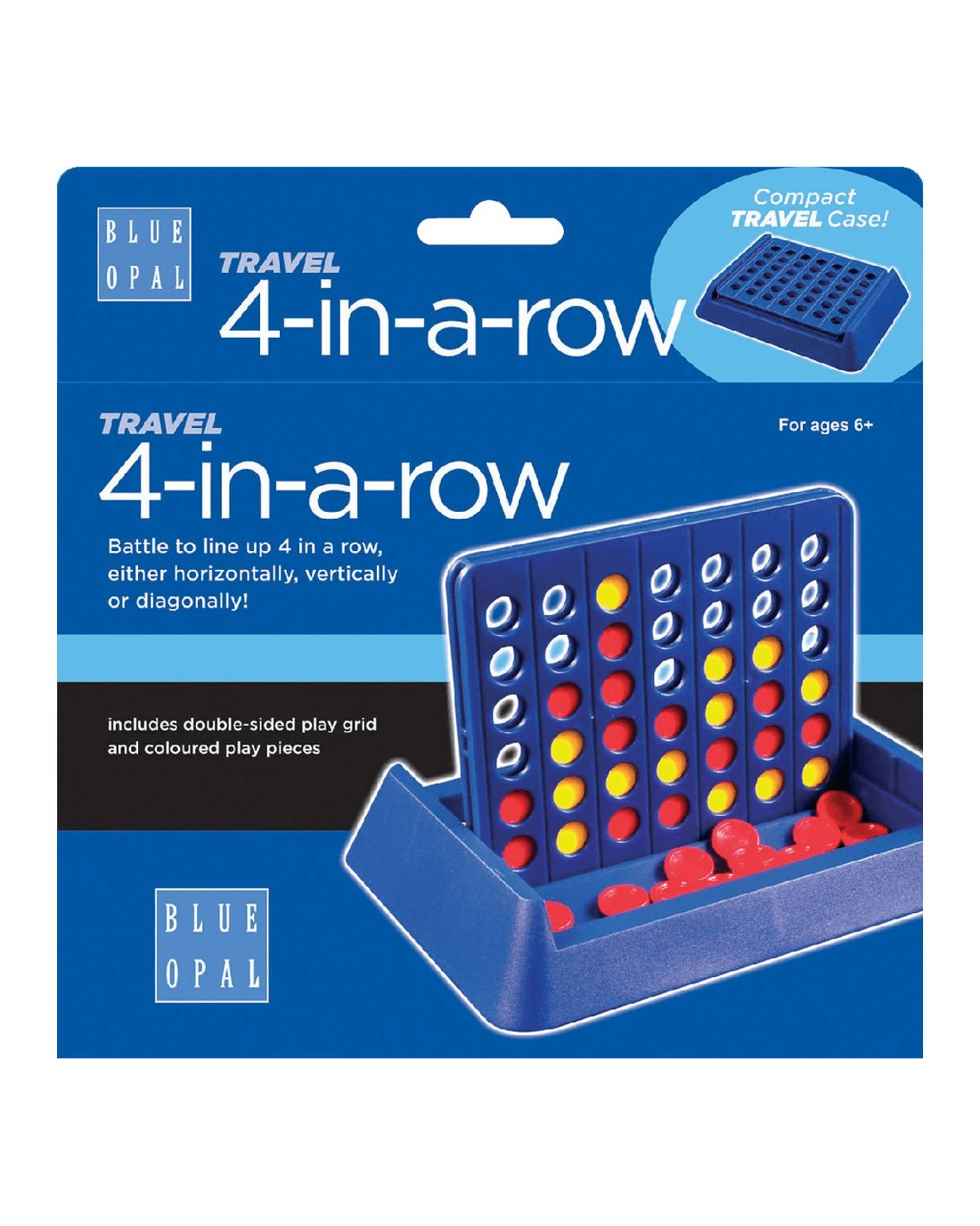 This Blue Opal 4 in a Row Travel Game is easy to play, simply connect 4 colours in a row to win. It's perfect for developing reason and strategy skills and is fun to play at the same time.