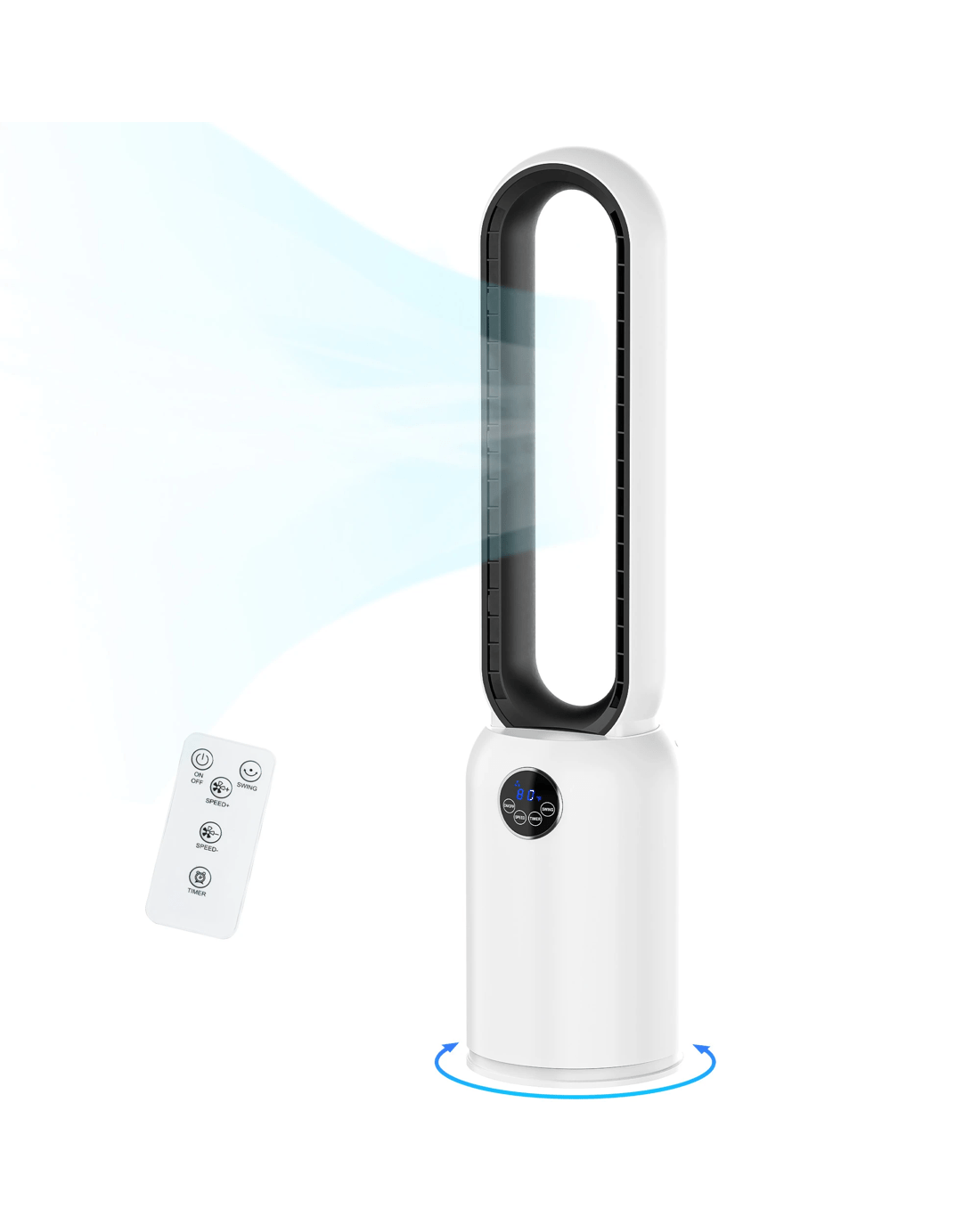 Tower fans can be placed in any corner of your home as well as in offices, conference rooms and other places due to its compact and portable design. Bladeless fans reduce noise and save energy, while the design of the bladeless fan allows airflow to pass through quietly and smoothly at high speeds, with air being drawn in from the surrounding area through the oscillating tower, generating maximum wind power with less electricity.