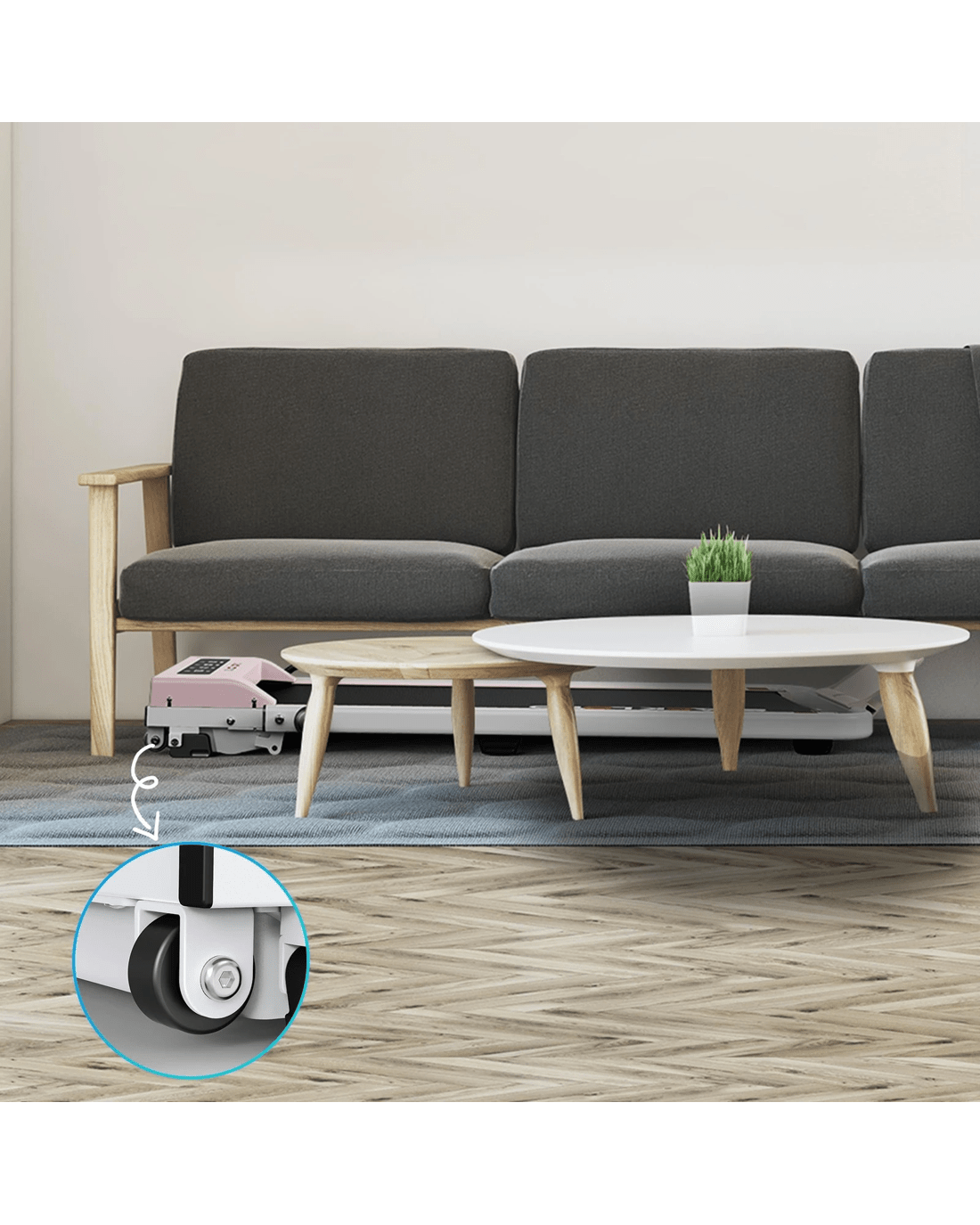 The unique portable wheels make it a breeze to move around and store it under the sofa or bed. Whether you're working at a standing desk, watching TV, or squeezing in a quick exercise session, this under desk treadmill helps you stay active without interrupting your day.