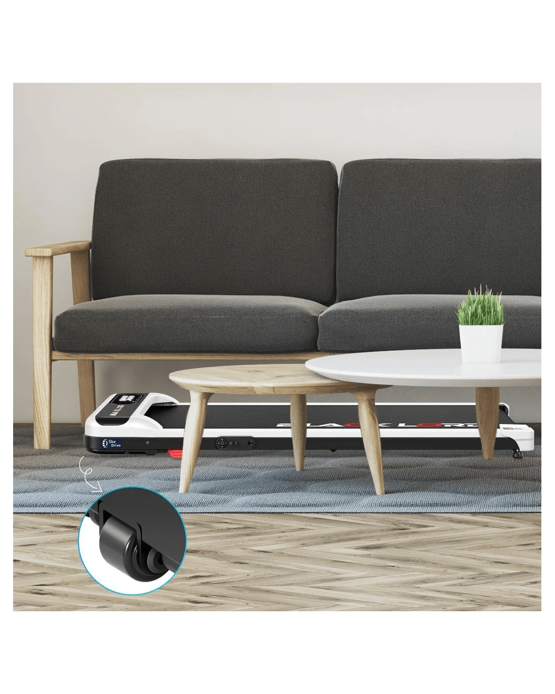 The unique portable wheel design makes it a breeze to move around and store it under the sofa or bed. Compact yet powerful, this walking pad fits seamlessly into your lifestyle. Whether you're working at a standing desk, watching TV, or squeezing in a quick exercise session, this walking pad helps you stay active without interrupting your day.