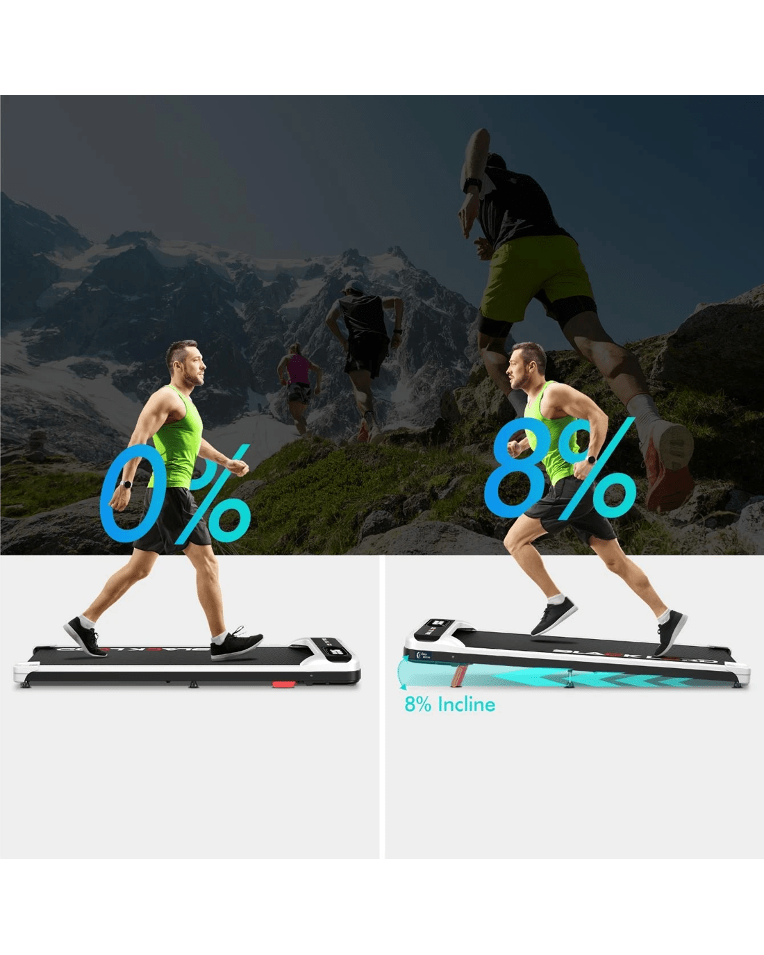 Powered by a 2.2HP OkoDrive motor, this walking pad delivers smooth, energy-efficient performance with a speed range of 1-11KM/H, giving you the perfect pace whether you're warming up or pushing your limits. Elevate your training potential with the integrated multi-level incline system, which supports a 0%-8% incline range to increase heart rate and boost calorie burn during tougher workouts.