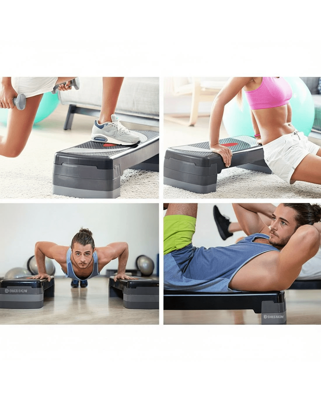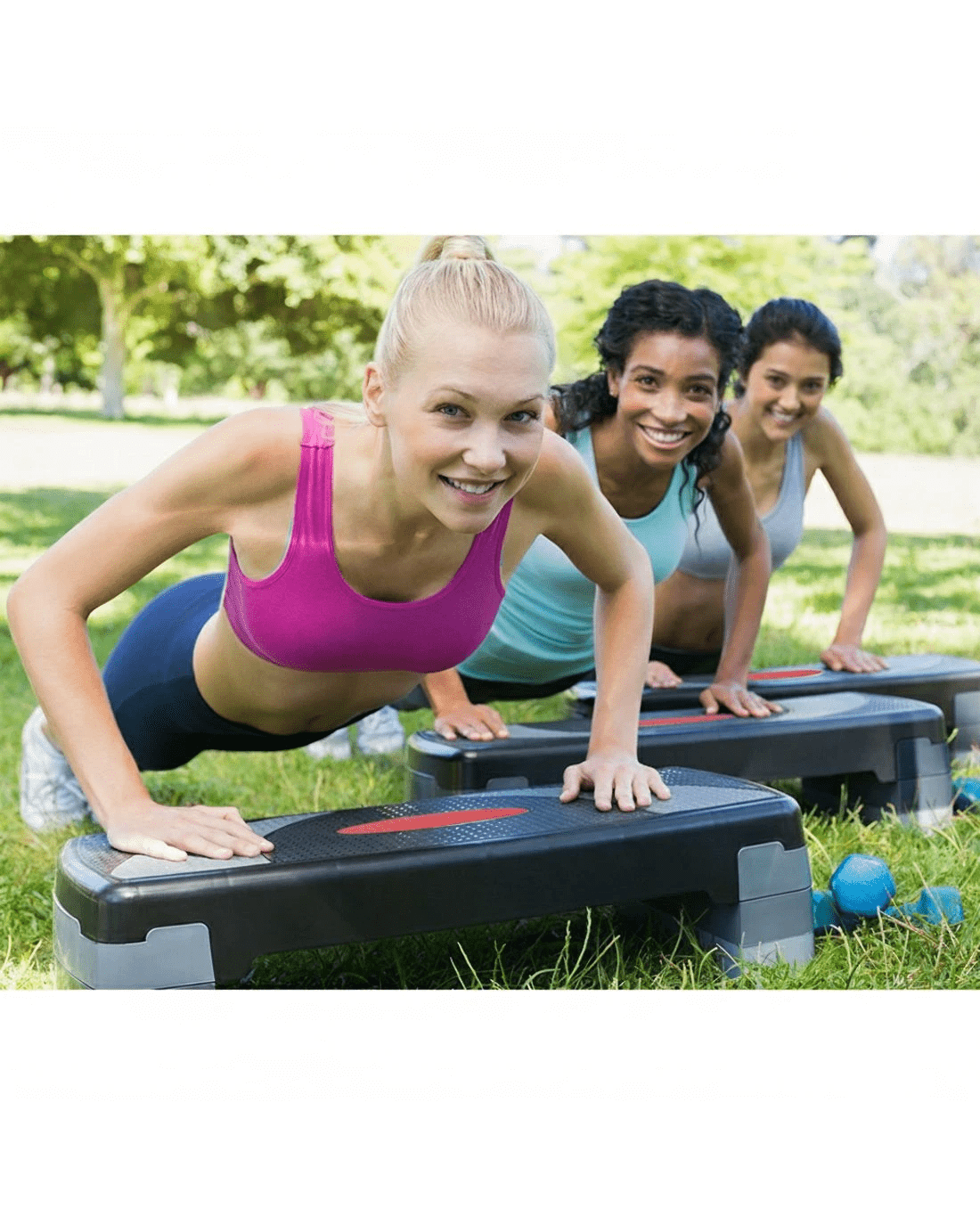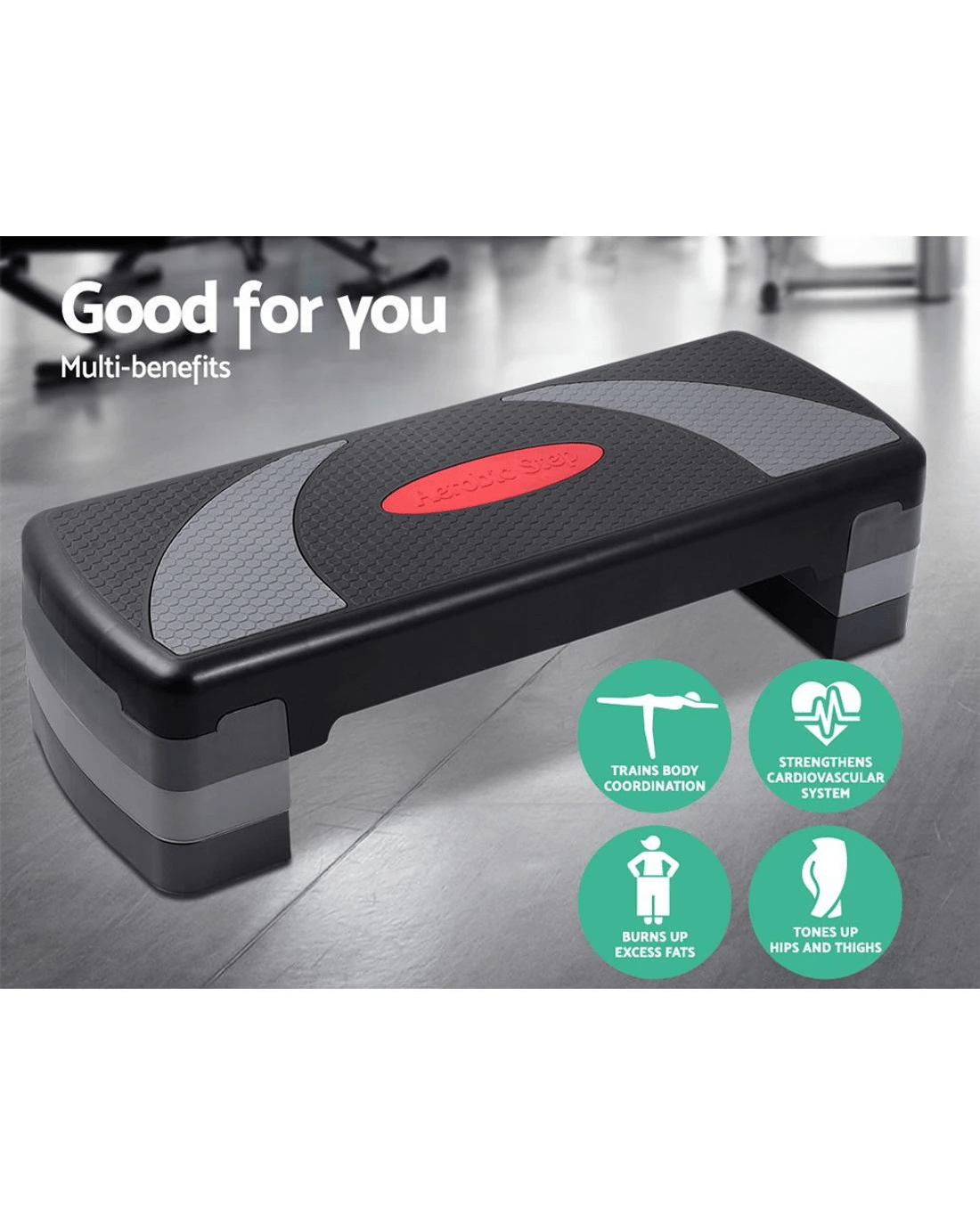 Have a professional workout at home with this commercial gym grade aerobic step. Just like the ones at your local gym, it features an advanced wide stepping platform. You can even adjust the height to the level that you feel is most comfortable for you to train at. It's excellent for improving cardiovascular fitness, and can also train your body coordination, burn fat and tone up your hips and thighs at the same time. No assembly is required for this aerobic step, simply stack it up and you're ready to train! Now that you can have a professional workout even when you're at home, you no need to organise time to go to the local gym, just train whenever you like! Train and save, buy an aerobic step today.