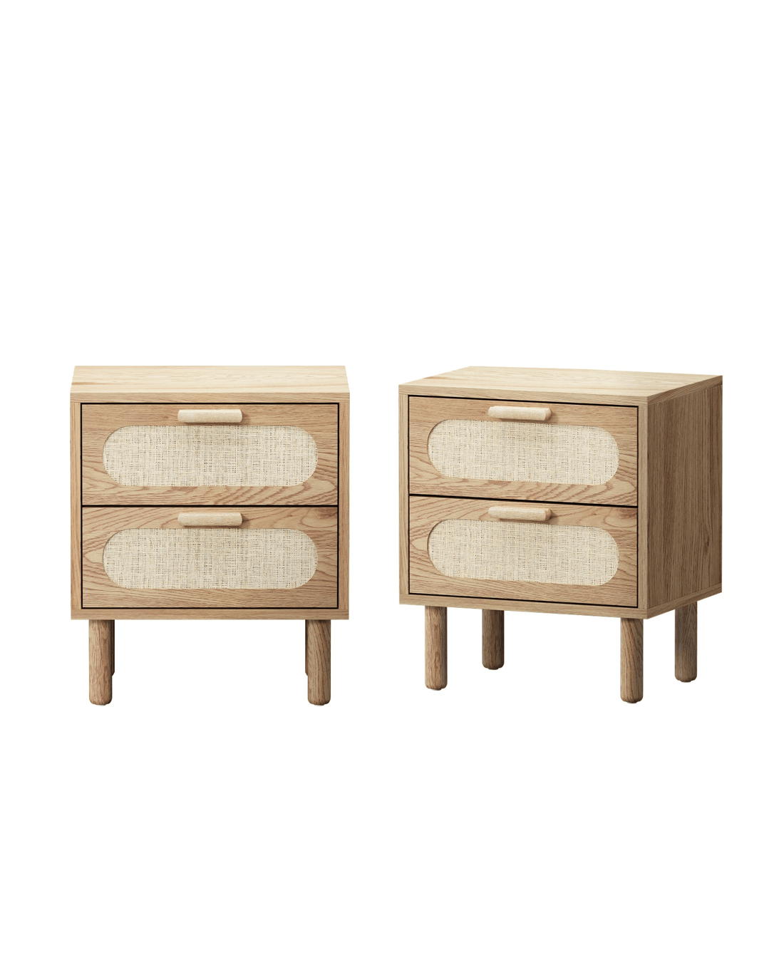 Oikiture 2x Bedside Table Drawers Side End Tables Storage Nightstand - Natural