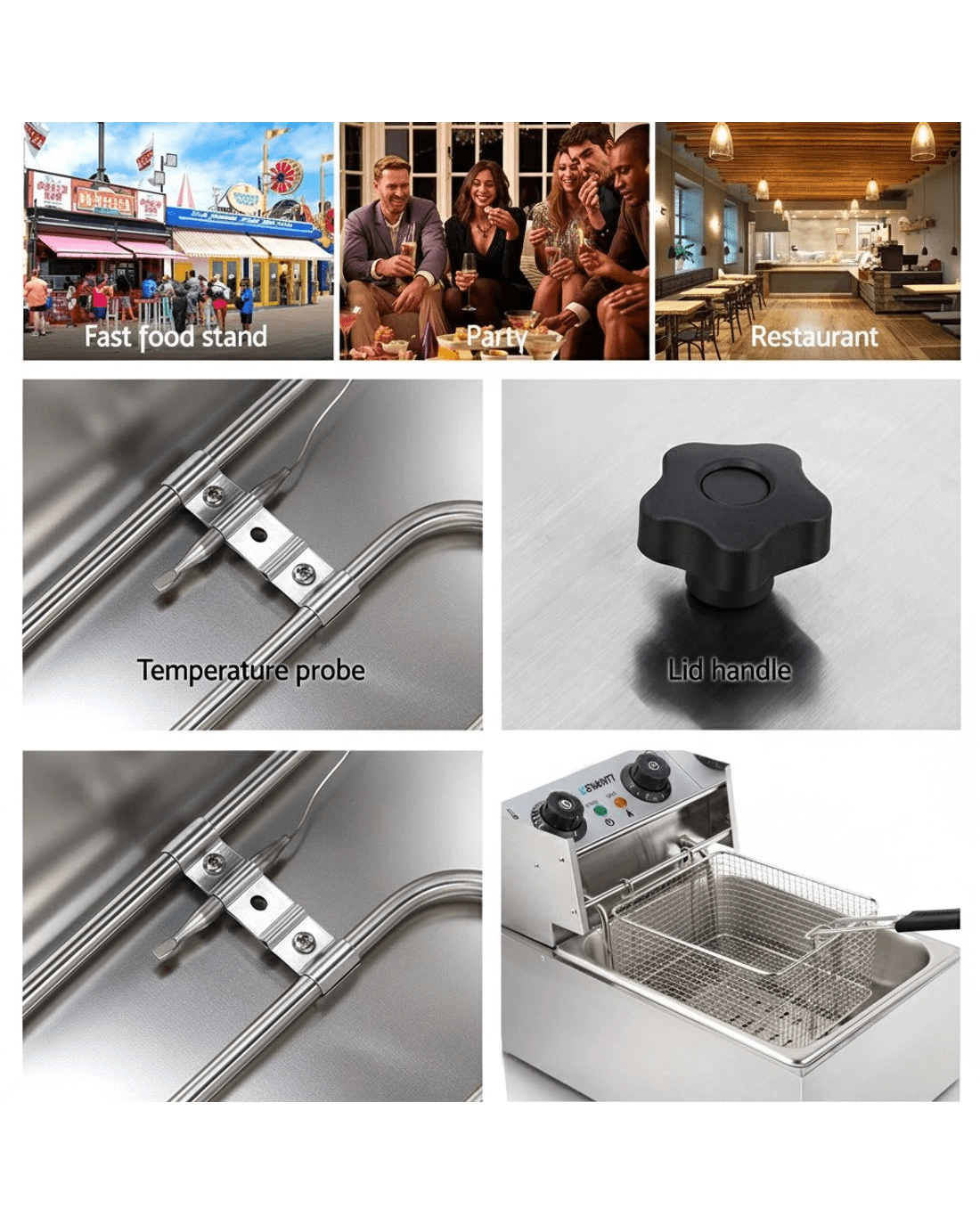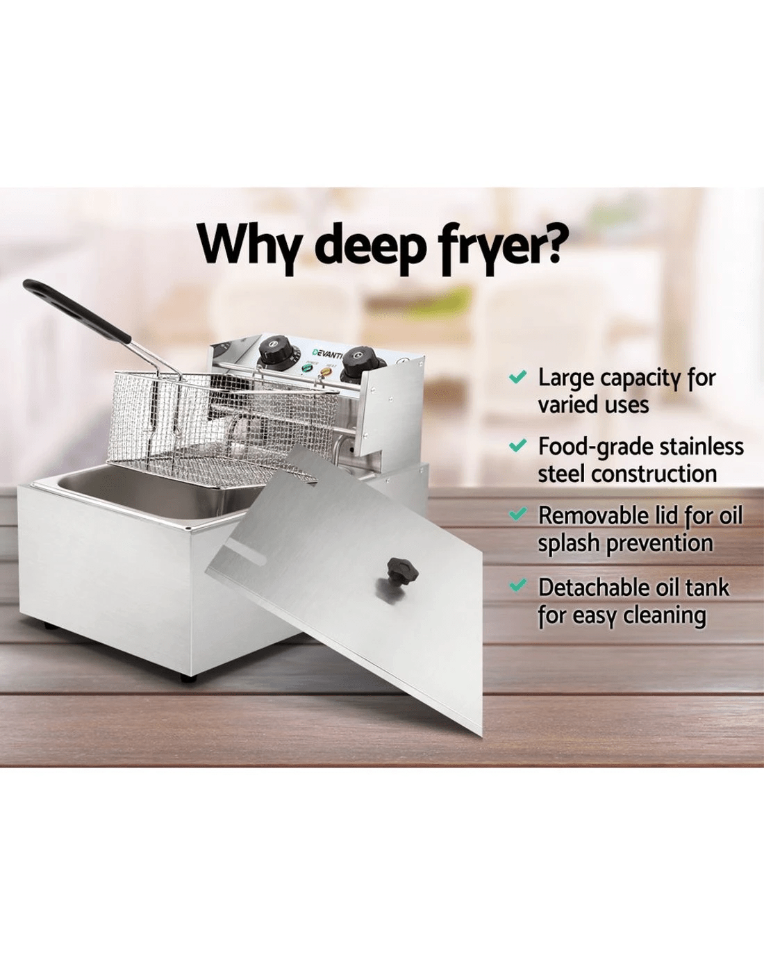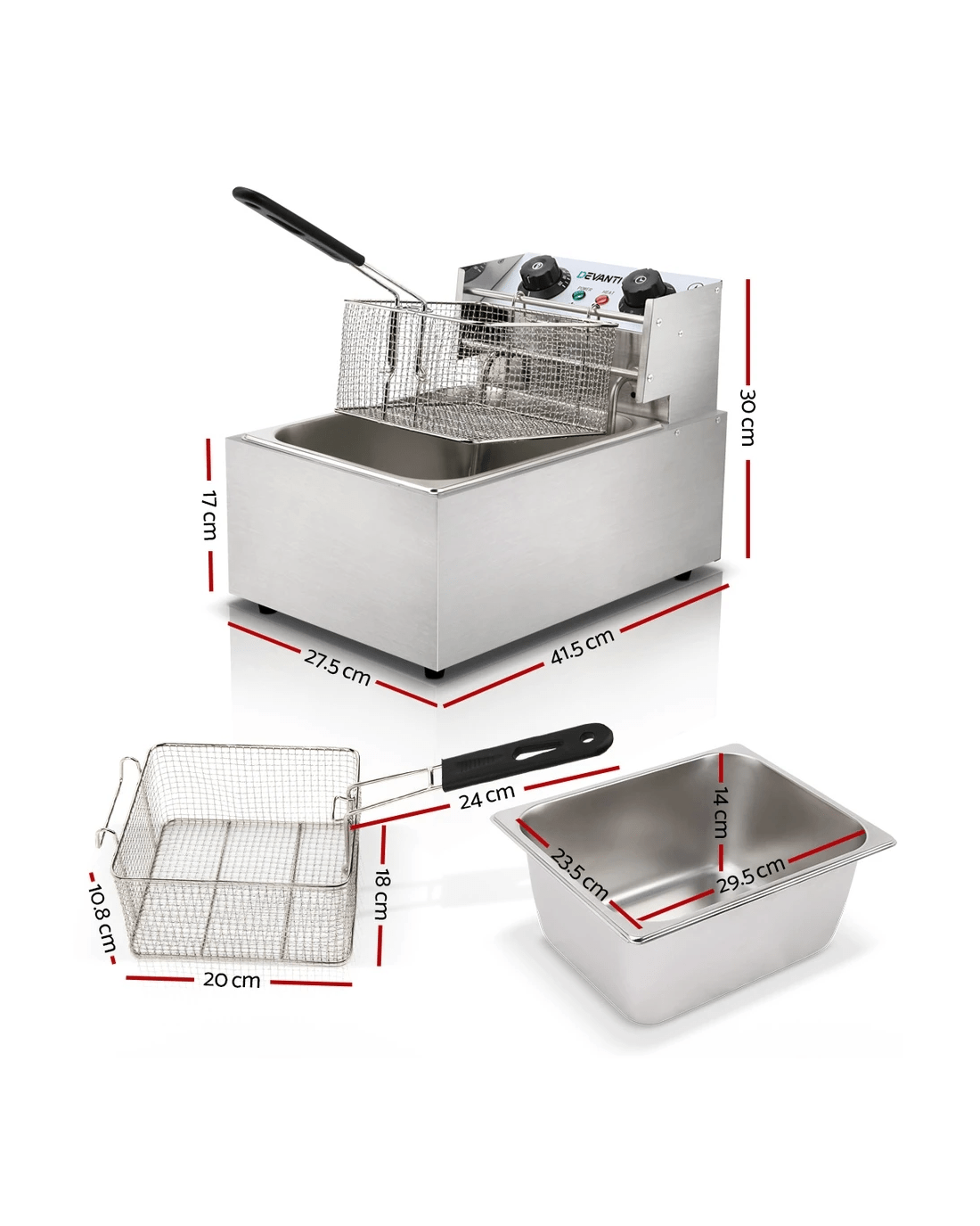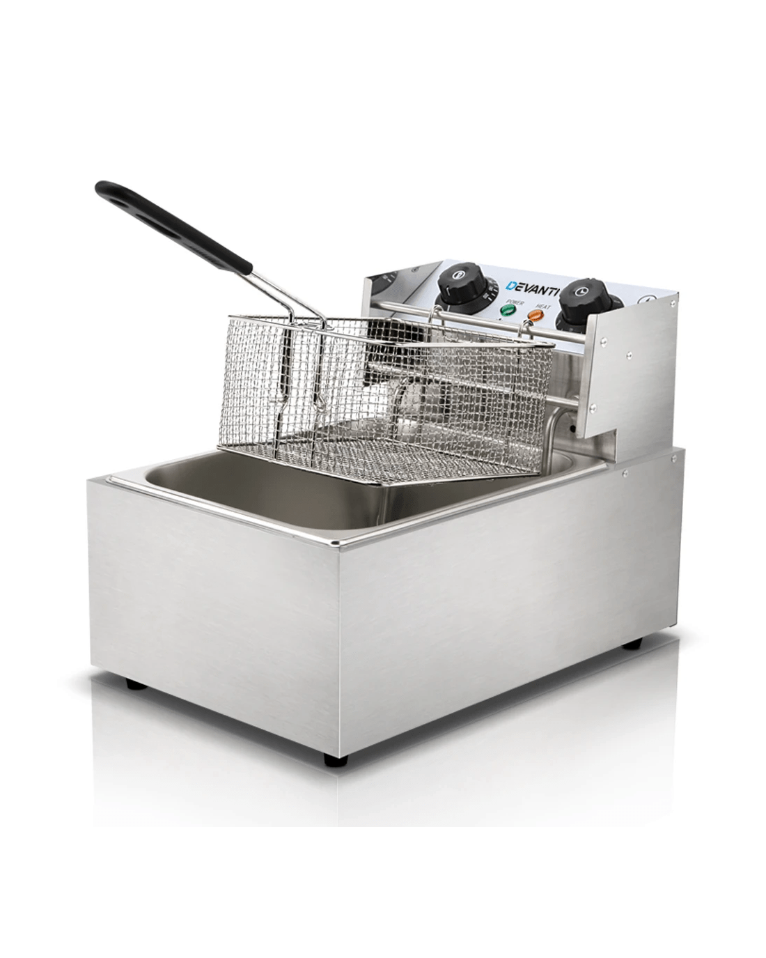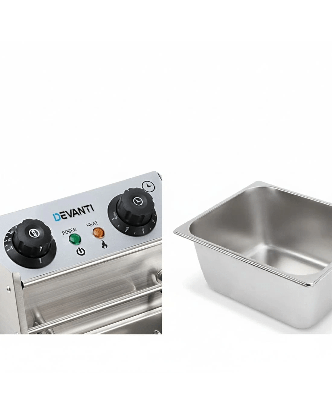 This Premium Devanti commercial deep fryer will lend you a hand with frying your dishes to perfection with the right crisp. Feature packed, including power-saving auto thermostat, hinged removable oil-heating plate, quick-heat function and non-slip rubber feet, this is the perfect chef anyone would love to have in their kitchen.