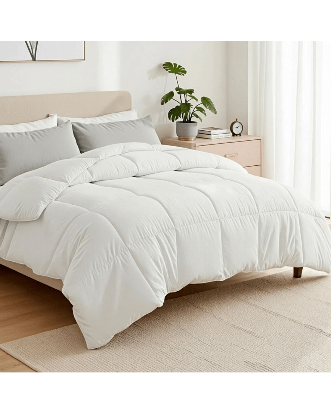 Experience true all-season comfort with the Giselle Bedding Microfibre Quilt. The 400GSM filling provides a soft, lofty, down-like feel perfect for year-round Australian weather. Featuring baffle box stitching to prevent shifting, this quilt is expertly designed for lasting durability and maximum insulation. Its anti-allergic construction ensures a hygienic sleep environment, while being fully machine washable for effortless care.