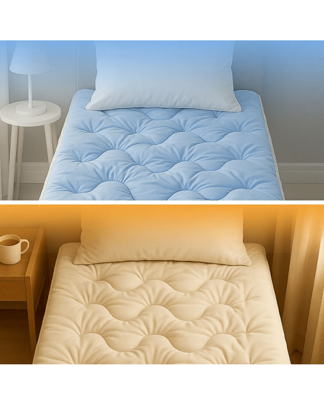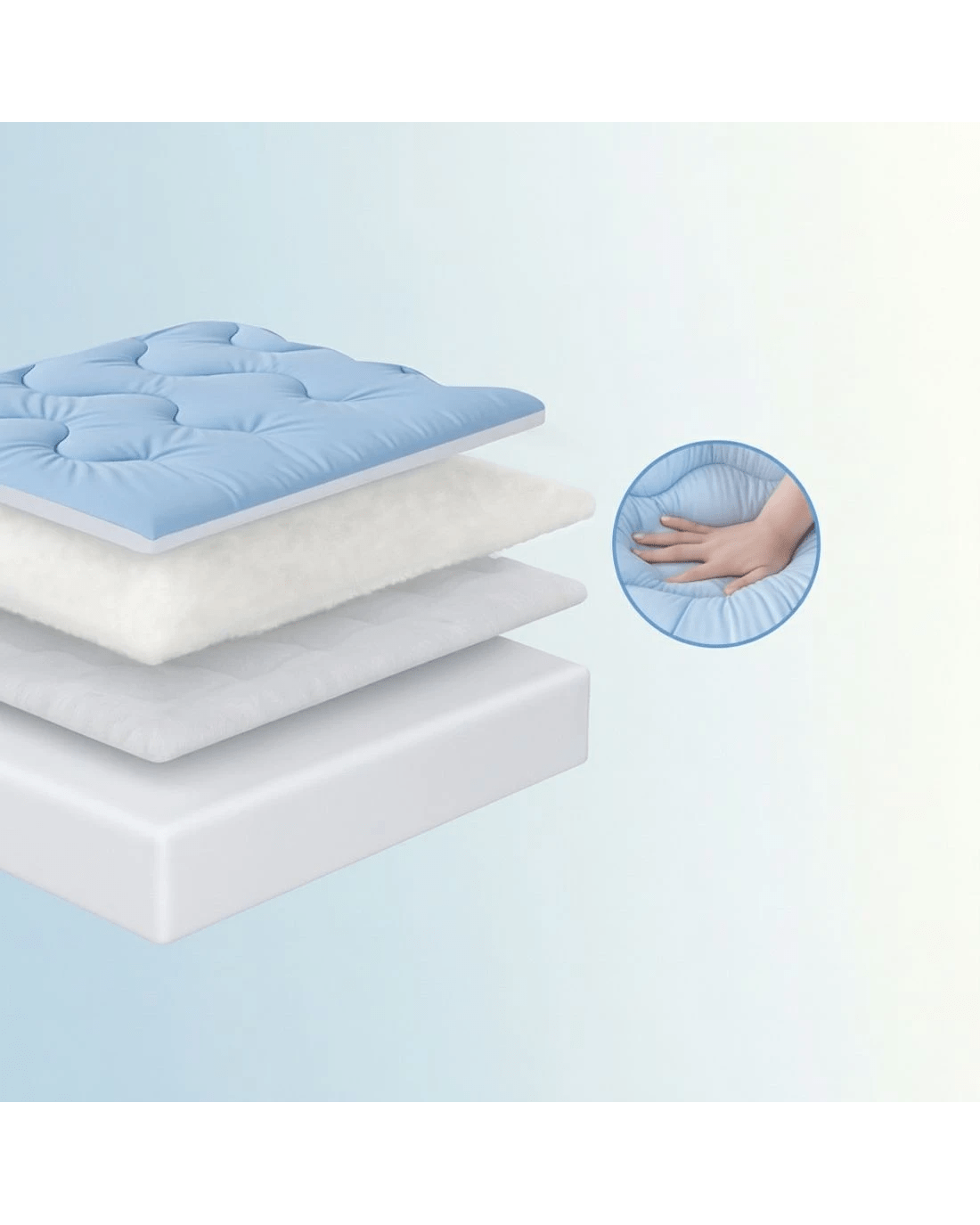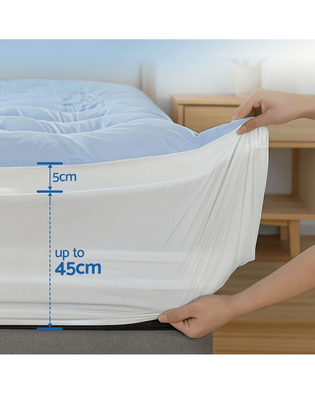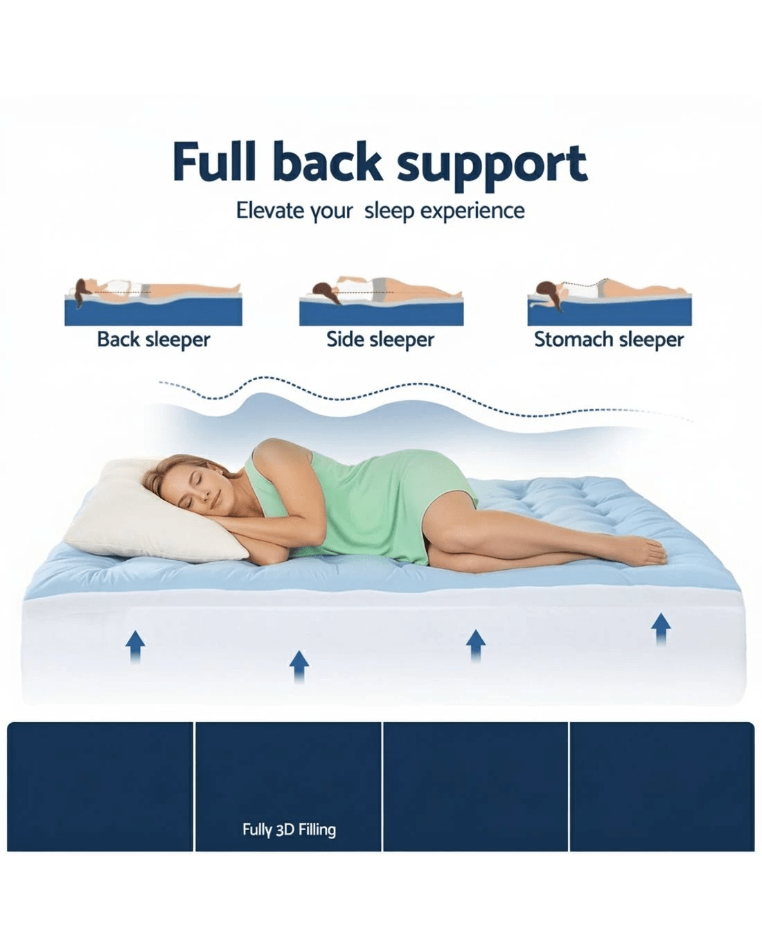 Enhance your sleep with Giselle Bedding's 5cm pillowtop topper featuring innovative double-sided design. The cooling fabric side wicks moisture while the coral fleece provides plush warmth.1000GSM hollow fiber filling and 3D wave quilting create balanced support that fits mattresses up to 45cm deep. This highly breathable topper reduces heat buildup and comes vacuum-packed for hygiene. Machine washable for effortless maintenance.