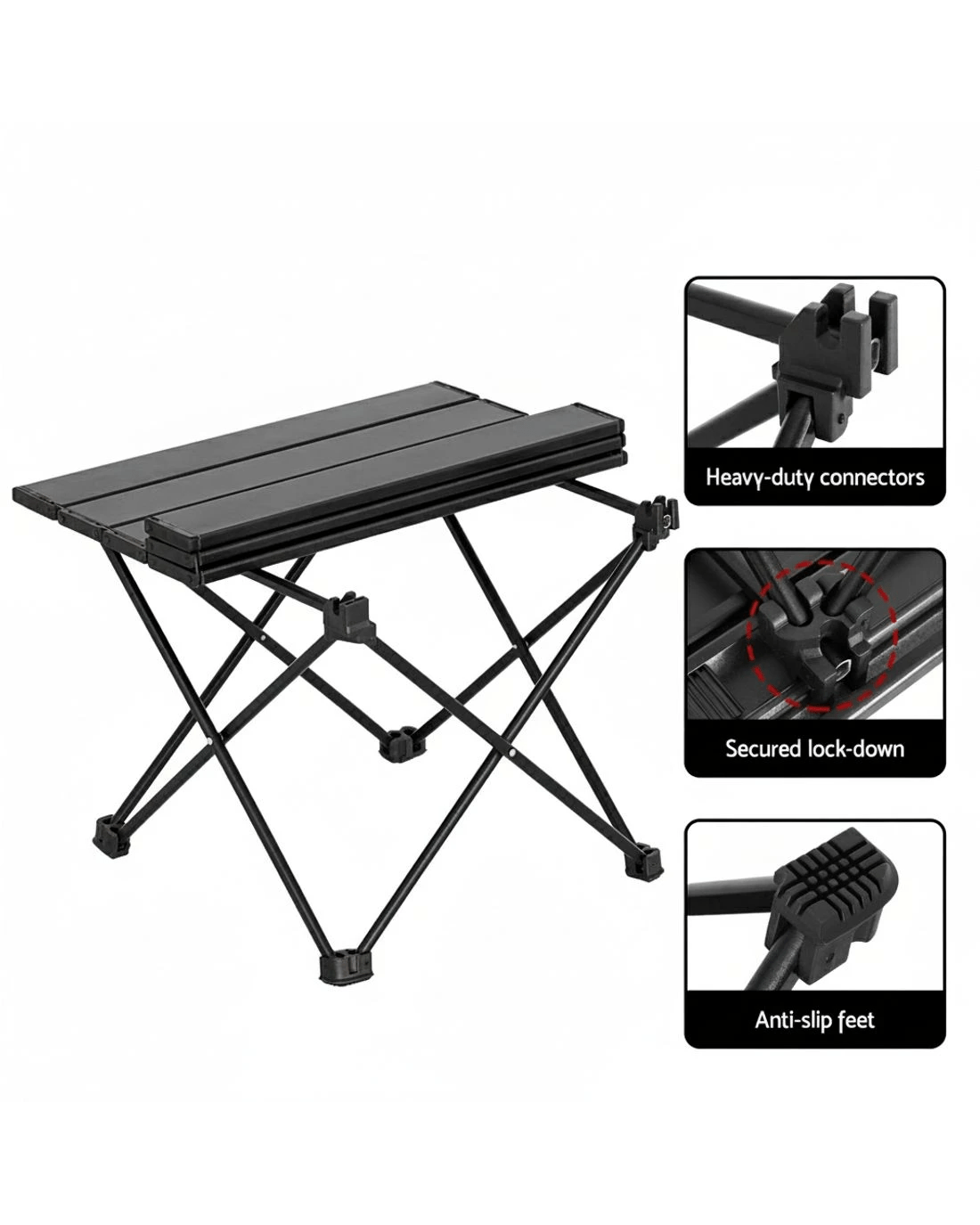 A classic camping essential, the Weisshorn Folding Camping Table is a must-have on your next cross-country camping trip. Unlike traditional folding tables, the Weisshorn Folding Camping Table can be rolled up neatly and placed in the included storage bag, saving you more space. The strong aluminium construction gives the table a weight capacity of 30kgs while remaining portable and lightweight. The table is anti-rust and corrosion, making it perfect for outdoor adventures like picnics, fishing, camping and beach days. Non-slip feet and secured locking features ensure the table stays in place throughout the day. Simple to set up, the Weisshorn Folding Camping Table is the perfect addition to your camping swag. Beat the summer rush and get yours today.