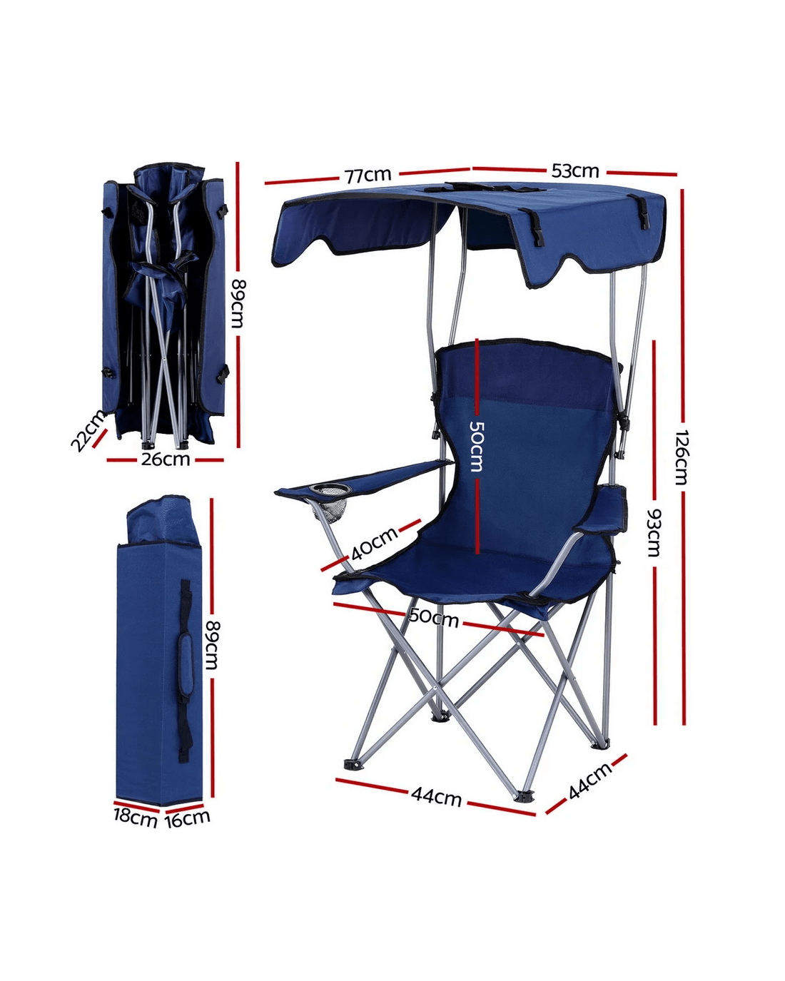 Sold by Aisle SixWeisshorn Camping Chair With Canopy Folding Outdoor Portable Seat Lightweight Beach Picnic Fishing Capacity 120KG - Blue