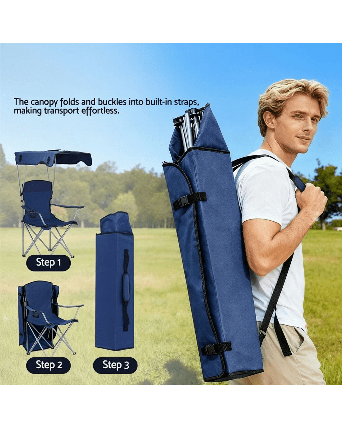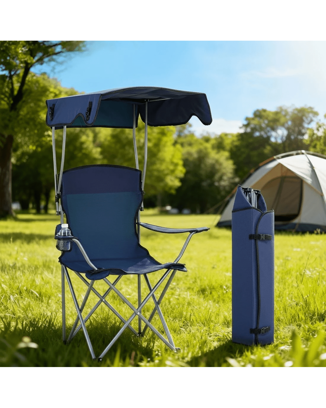 Relax in comfort wherever you go with this Portable Folding Camping Chair with Built-in Canopy. Designed for camping, beach trips, picnics, fishing, and backyard lounging, it provides reliable shade and comfort in any outdoor setting.