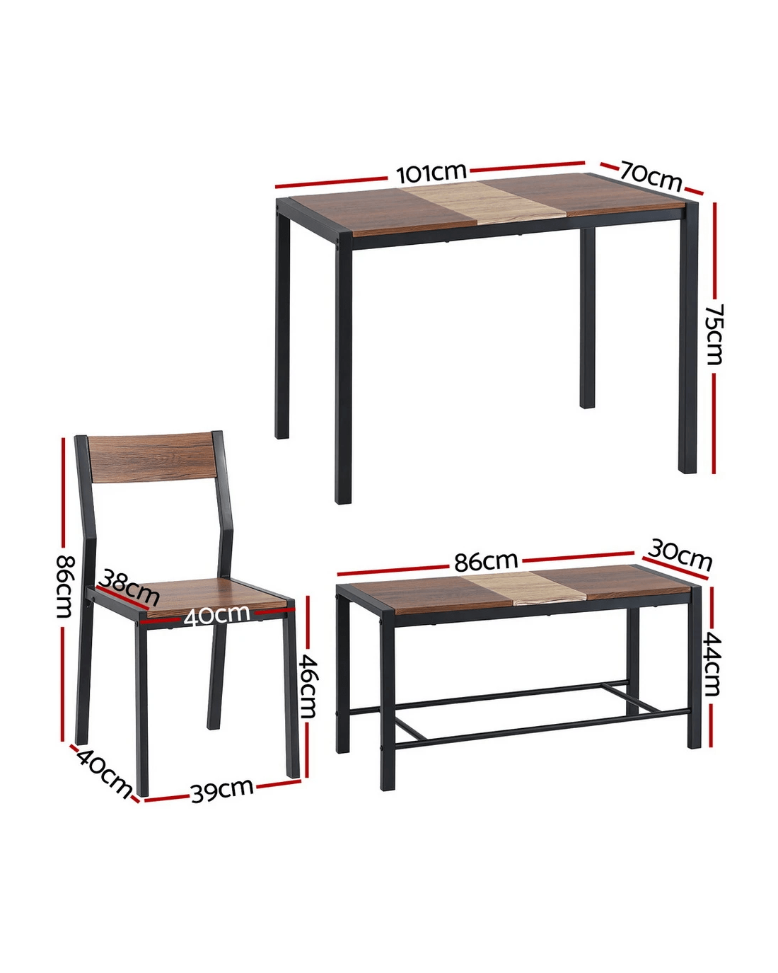 Bench overall dimension: 86cm x 30cm x 44cm