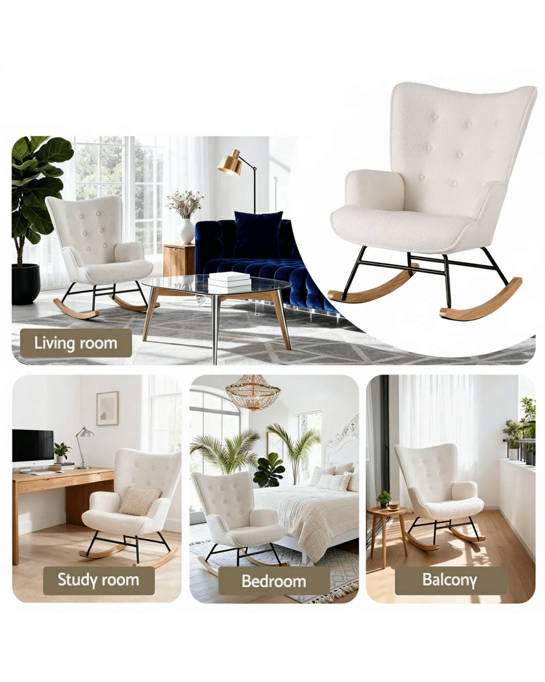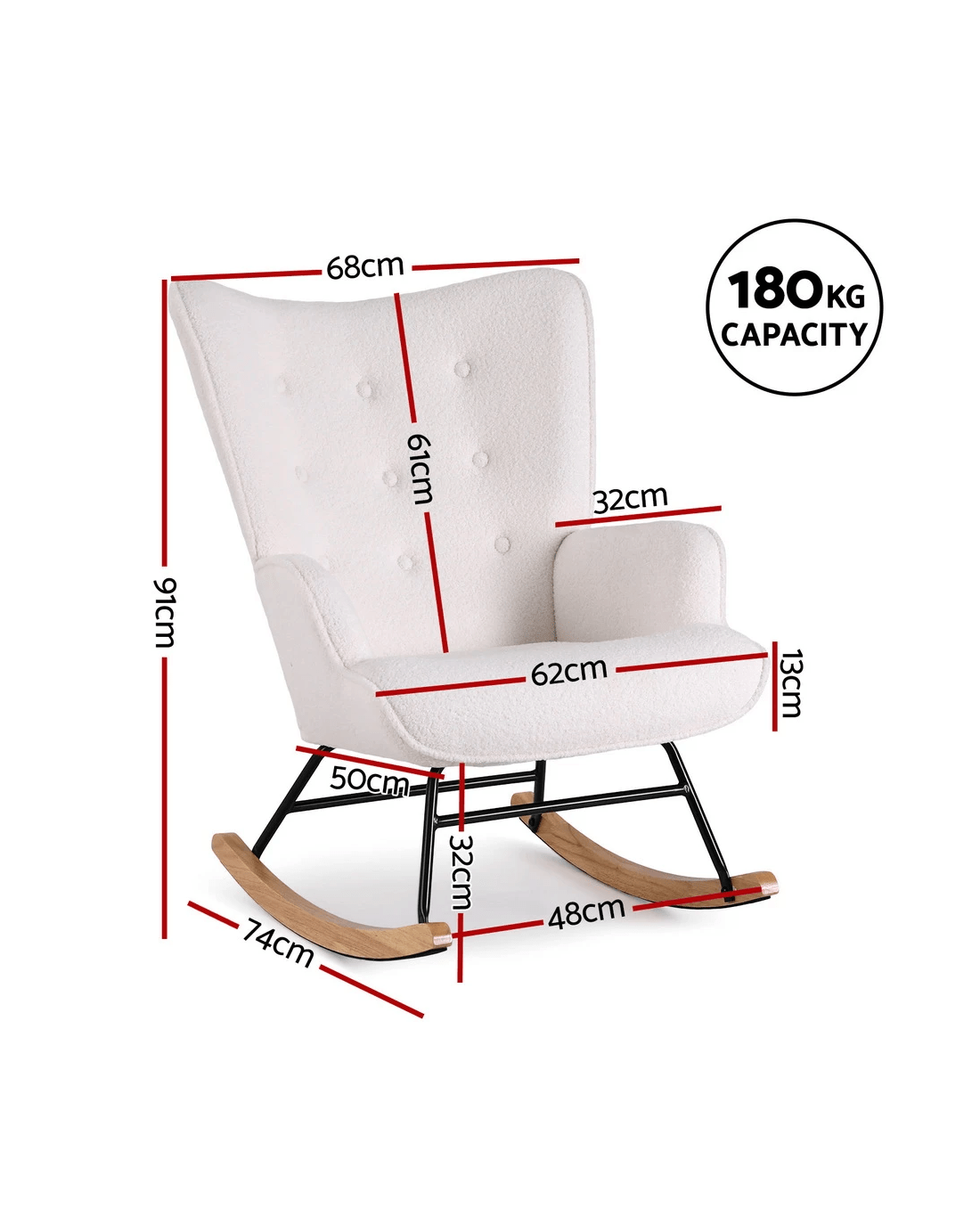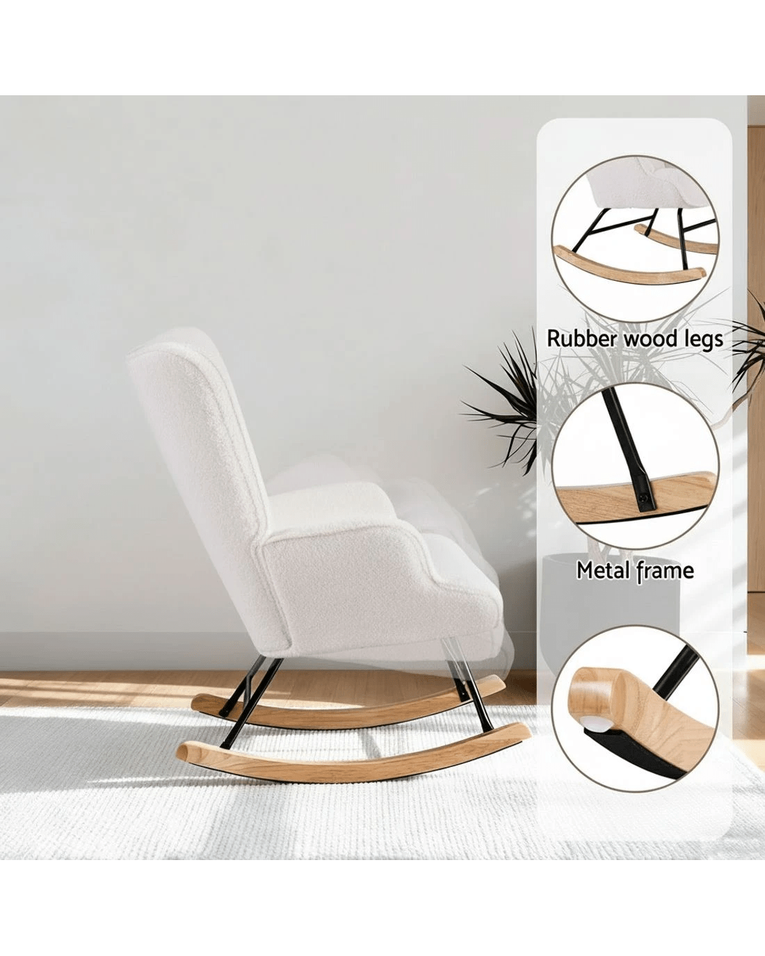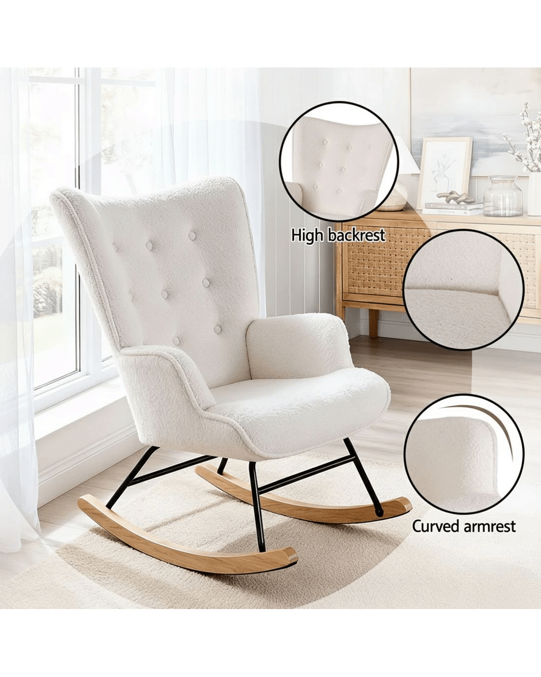 Sold by Aisle SixArtiss Rocking Chair Armchair Nursing Boucle Fabric - White