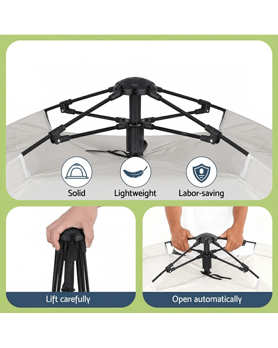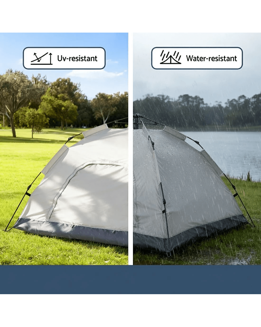 Enjoy stress-free camping with our 2–3 person Weisshorn Camping Auto Instant Pop Up Tent, ready in seconds for your outdoor adventures. Crafted from removable 210D Oxford Cloth, it delivers water resistance and UV protection, keeping you safe from rain and sun. Welded floor corners ensure a dry interior, while the double-sided zipper allows effortless access. Rollable windows and doors provide fresh airflow. Durable, spacious, and easy to set up, this tent is perfect for family camping, festivals, or weekend getaways, combining convenience and comfort in one reliable package.