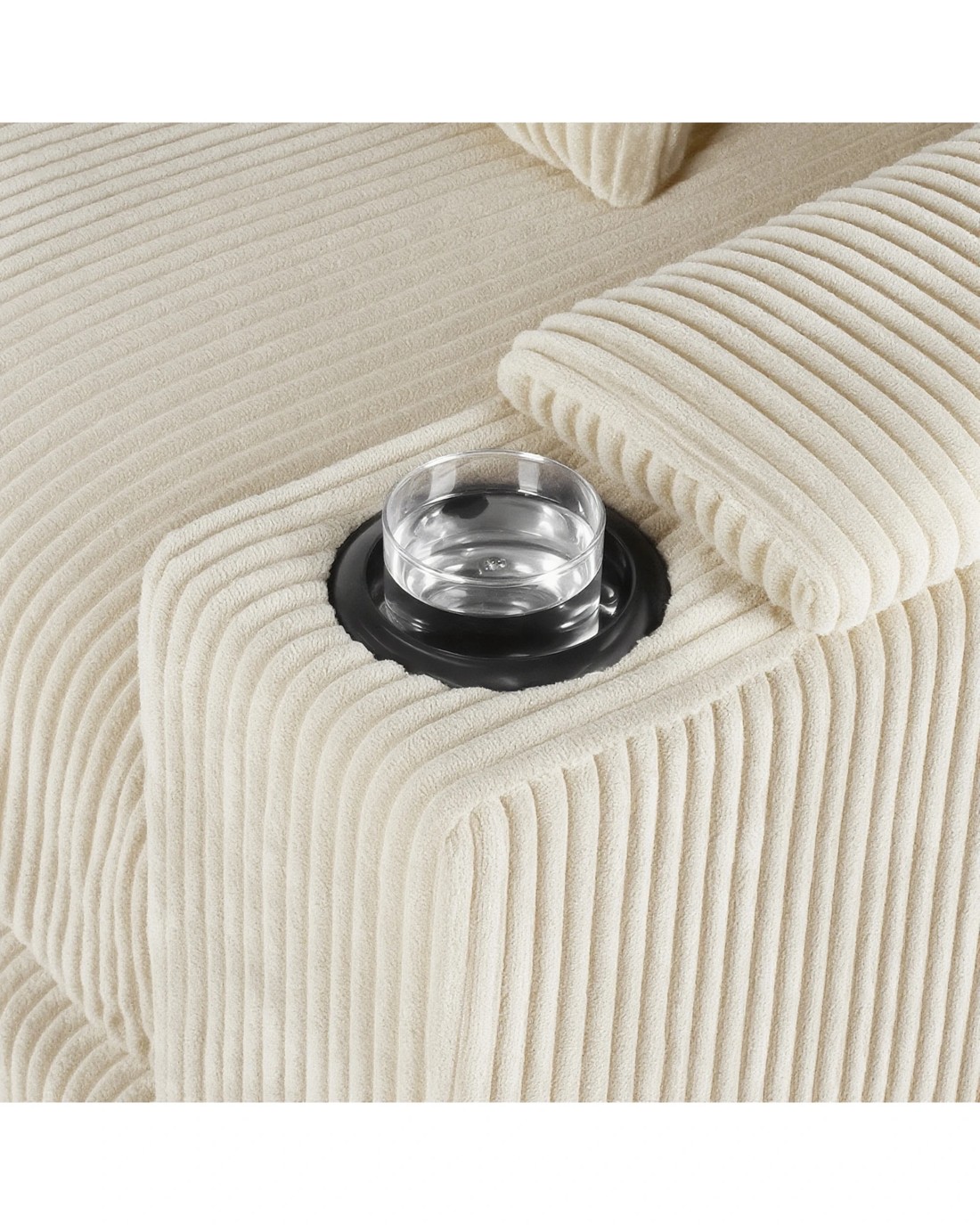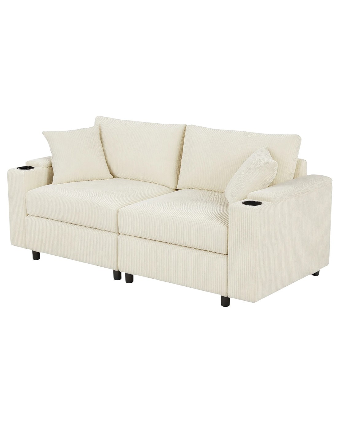 High-end Texture: Our corduroy sofa will become your favorite place to relax in your home. The cream sofa is made from corduroy fabric that is soft to the touch while providing a furry texture. Advwin sofa armrests come with hidden storage and cup holders, creating the perfect environment for casual living.