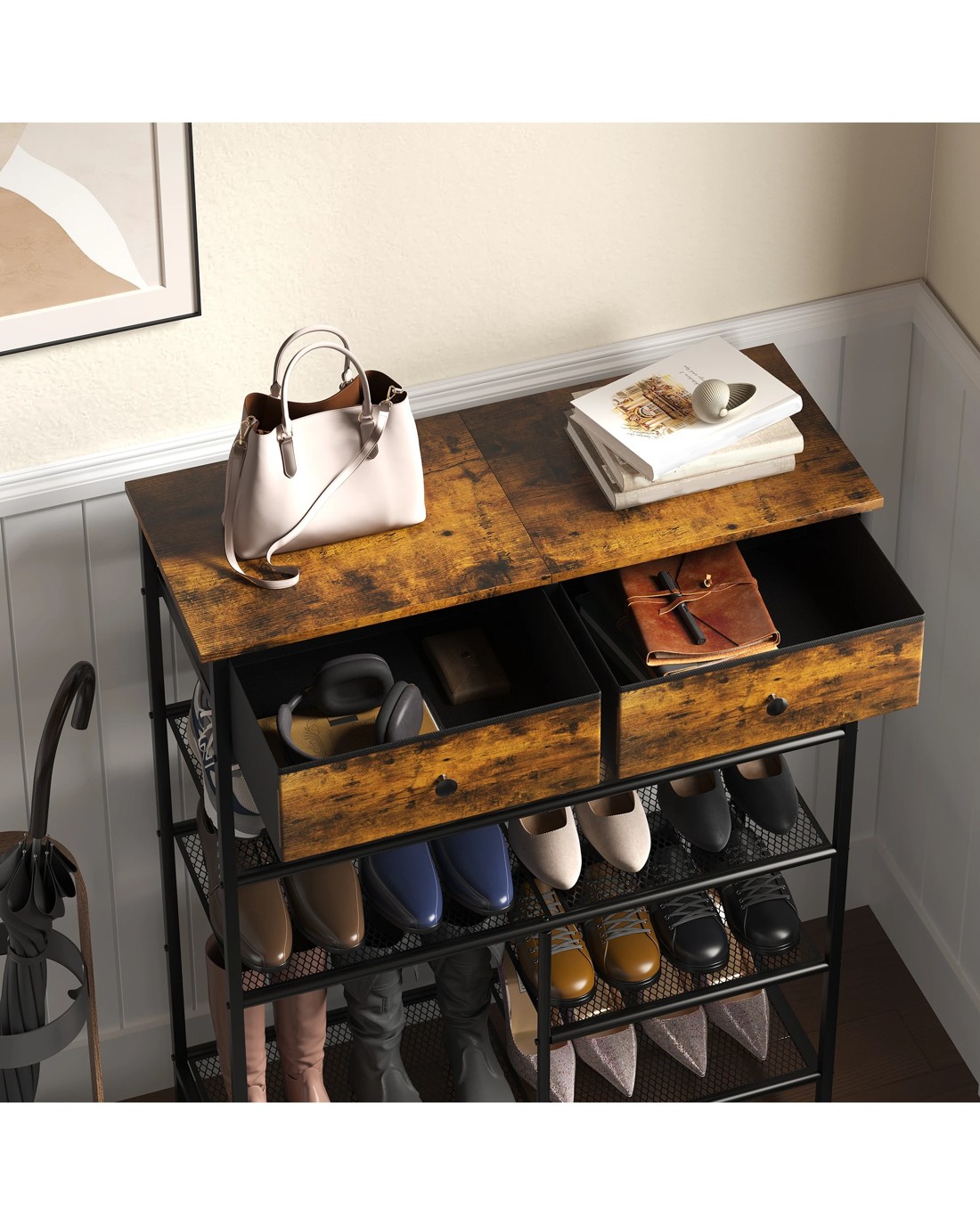Shoe Rack with Drawers: This versatile shoe rack features two non-woven drawers, perfect for storing everyday essentials like keys, gloves, dog leashes, hats, and scarves. Keeping your entryway neat and organized is easy.