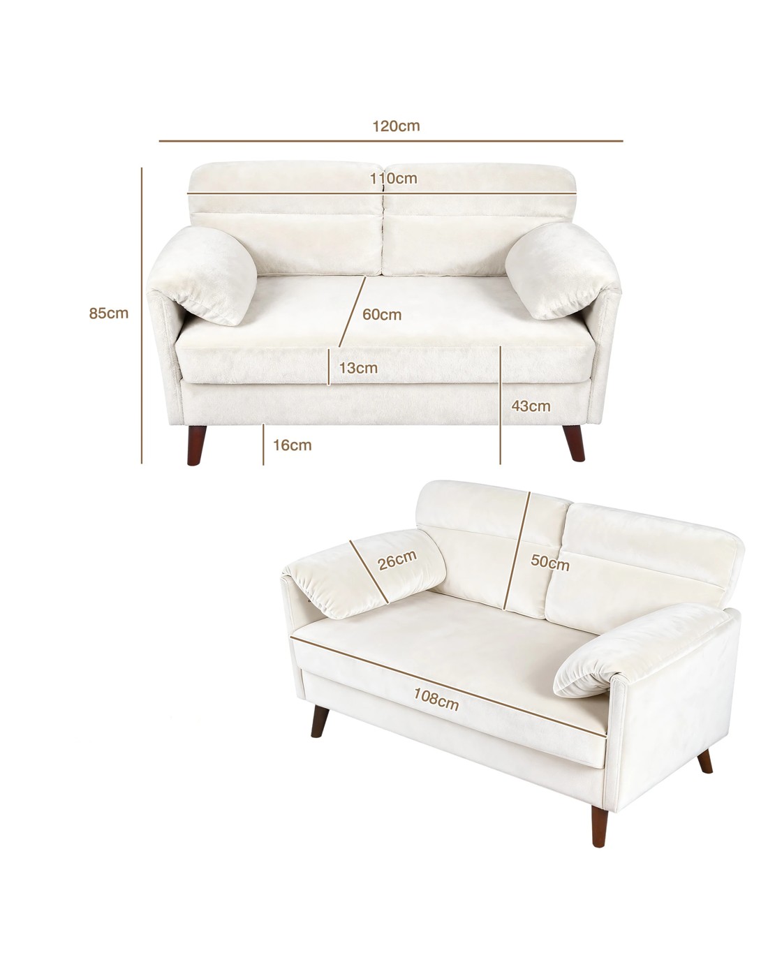 Sold by AdvwinAdvwin 2-Seater Sofa 120cm Love Seat Velvet Fabric Small Loveseat Sofa Couch for Compact Small Space