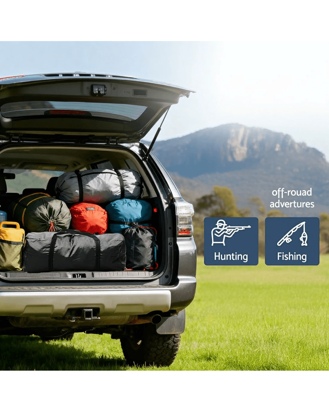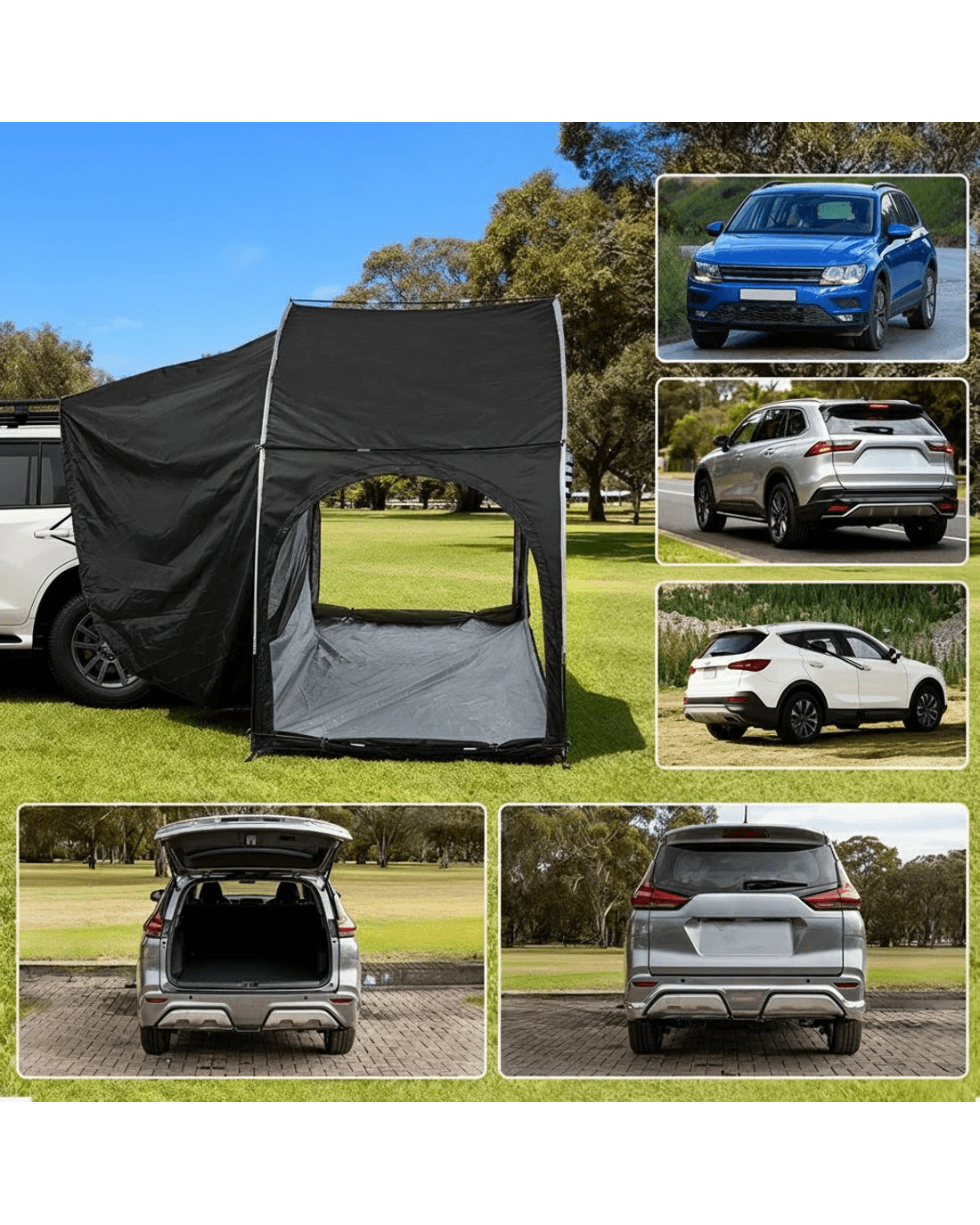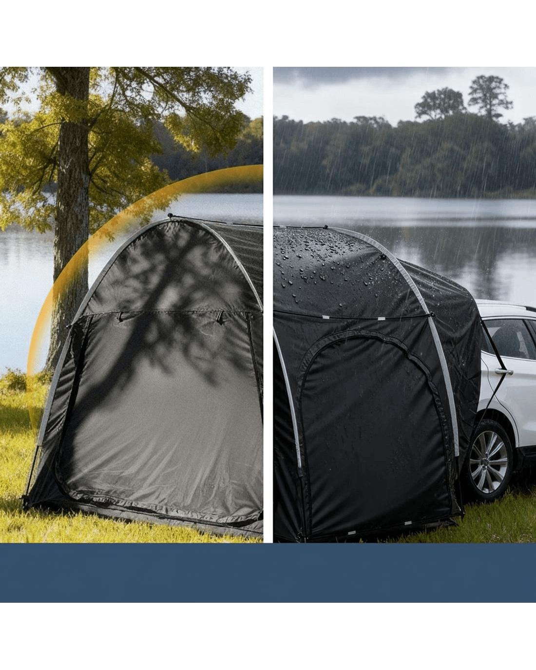 Designed for convenience and versatility, it easily attaches to the rear of your vehicle, expanding your living space and providing quick access to your gear. Crafted from water-resistant Oxford fabric with UV protection, it keeps you sheltered from sun, rain, and wind. The sturdy poles ensure a stable, long-lasting setup, while double-sided zippers on every opening allow effortless entry and enhanced airflow when rolled up. Thoughtfully designed with built-in storage pockets, it keeps your essentials neatly organized. Enjoy extra comfort and freedom on your next road trip or outdoor adventure with the Weisshorn Car Camping Tent.