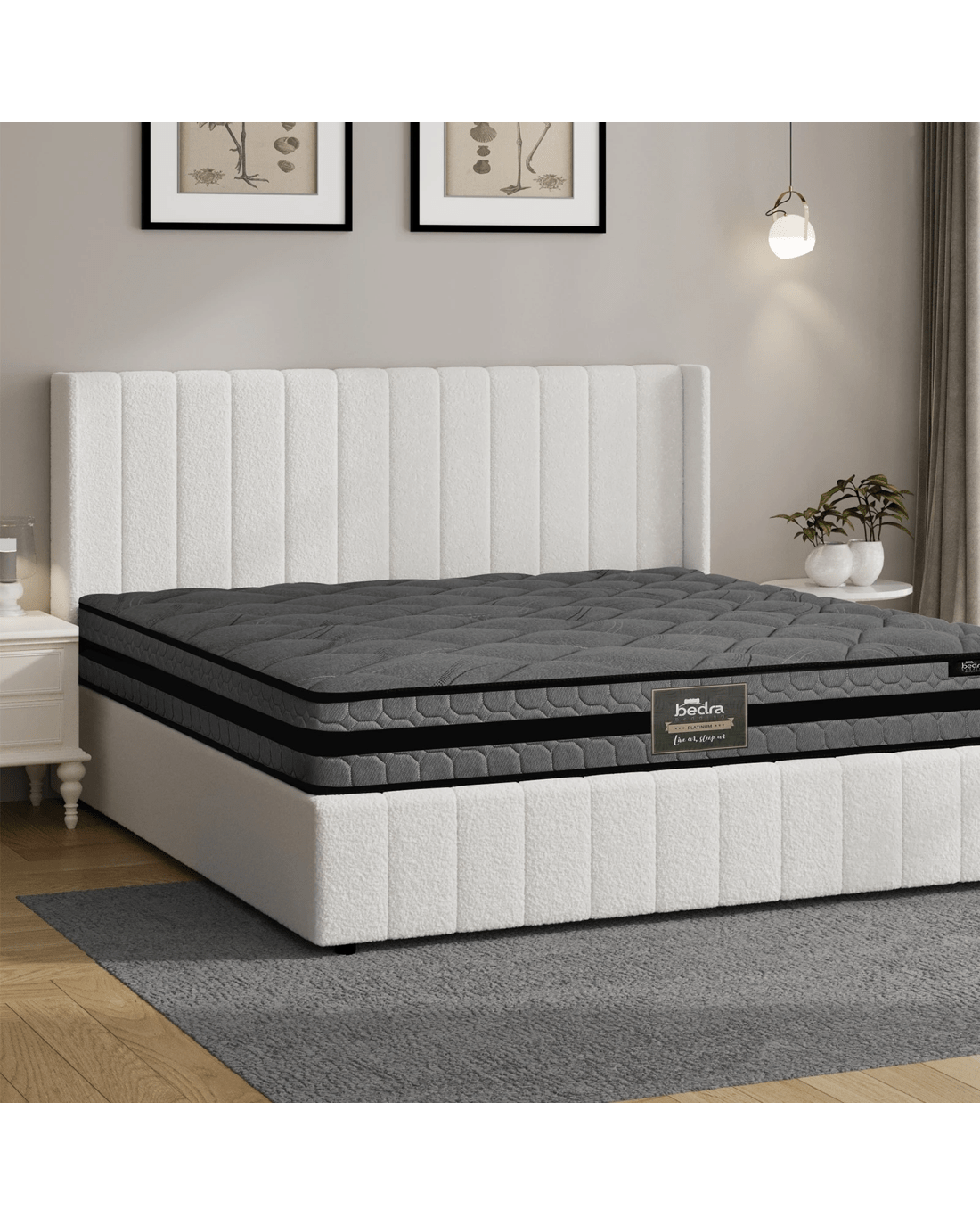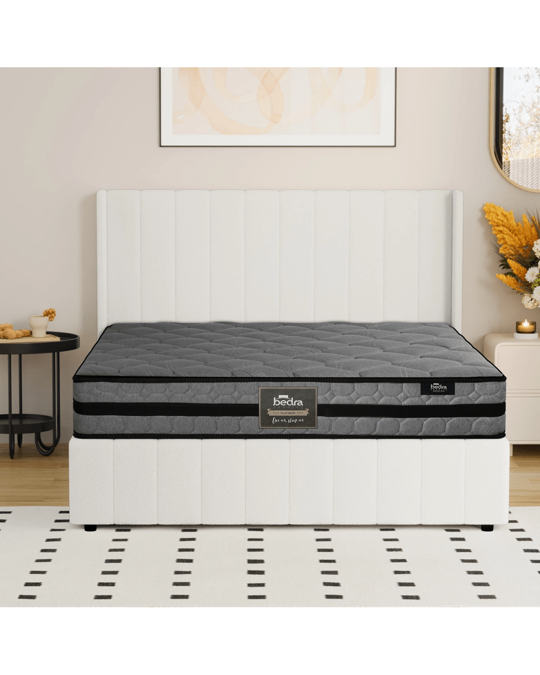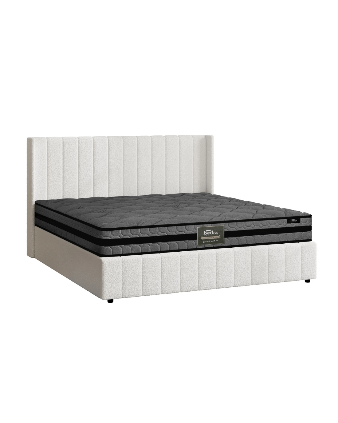Best of all, the stylish bed frame also includes a comfortable Bedra Bedding Pocket Springs mattress to complete the set. This high-quality spring mattress features all the benefits of an independent pocket springs system that provides reinforced edging, motion isolation, anti-disturbance and full body support. Naturally, the highly breathable mattress complies with all required standards and certification and is hygienically safe from top to bottom and everything else in between.