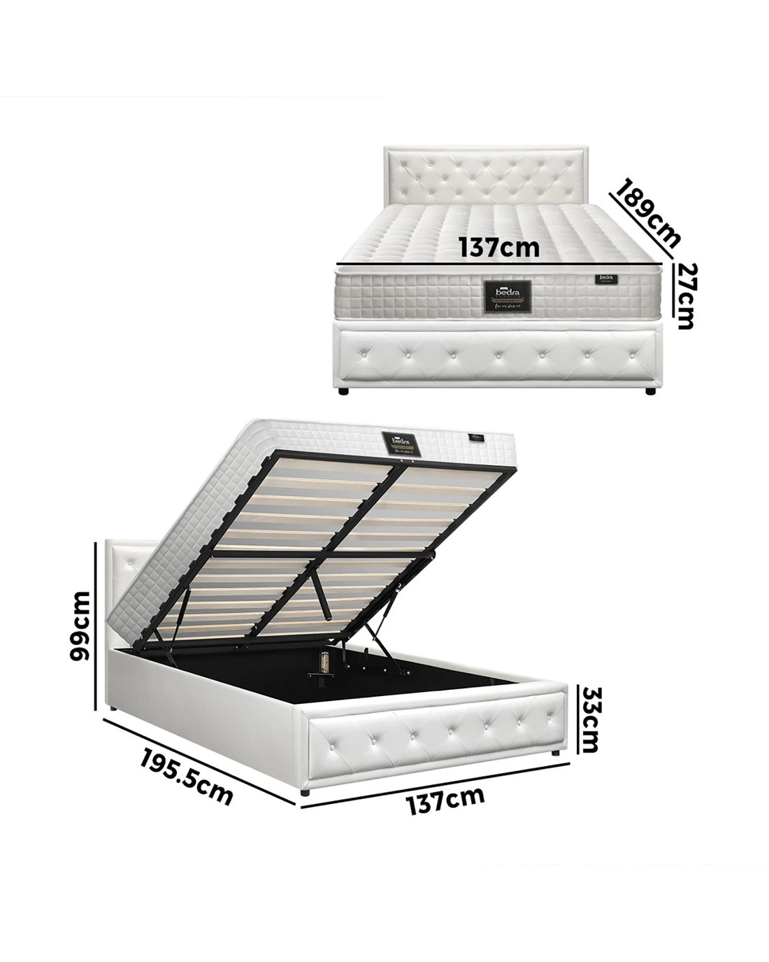 Double: 137cm x 195.5cm x 99cm