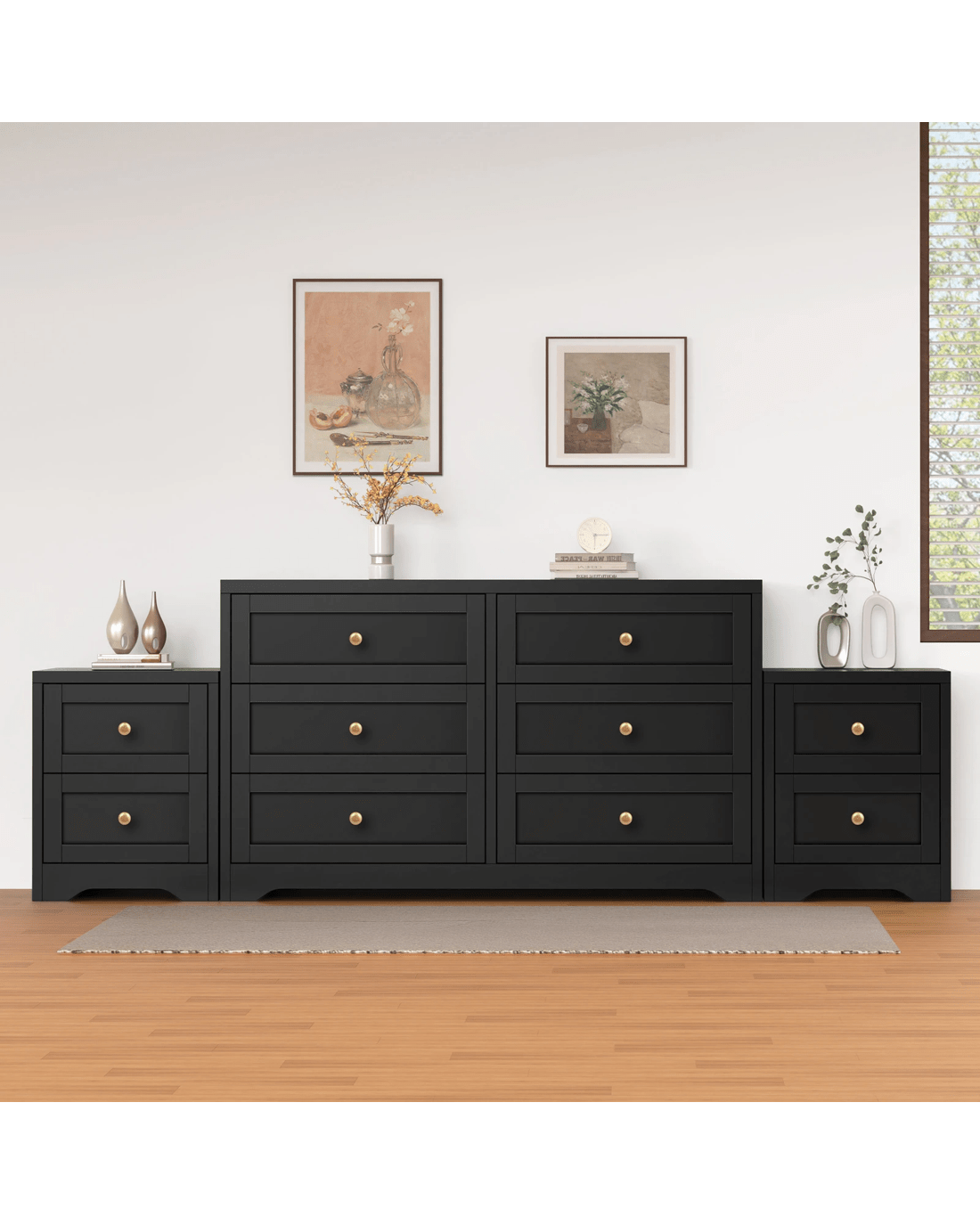 Sold by Aussie Union GroupAlfordson 6 Chest of Drawers 2x Bedside Table Hamptons Bedroom Storage - Black