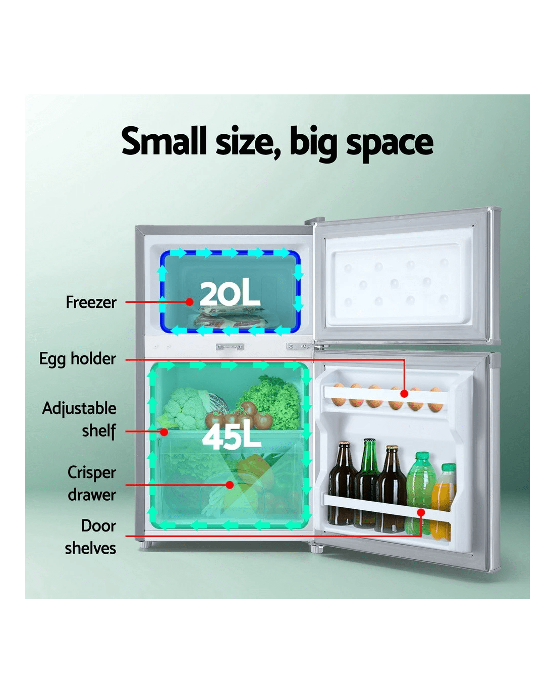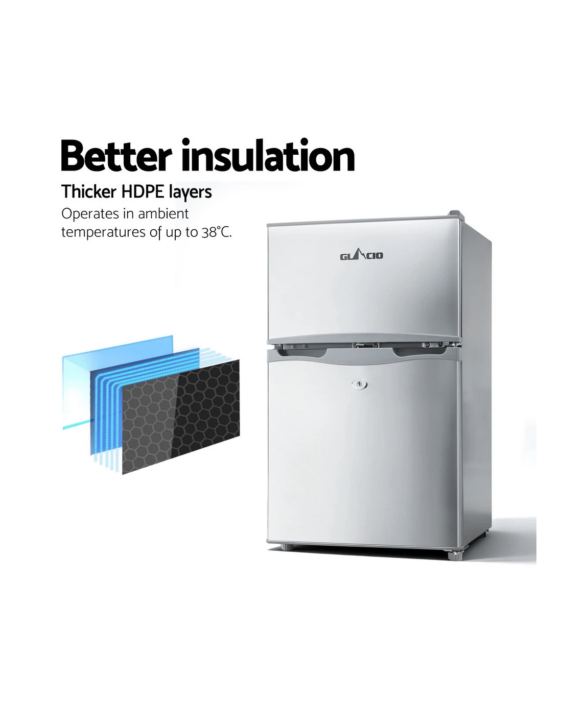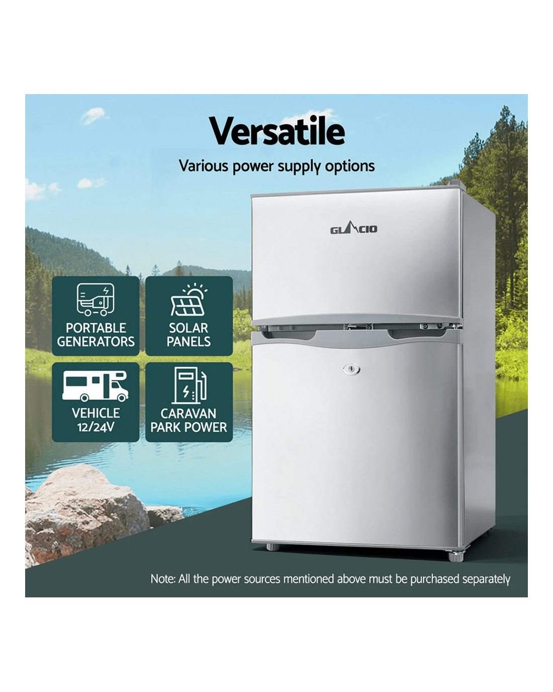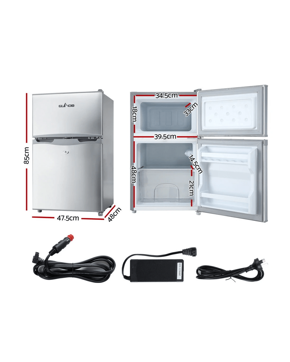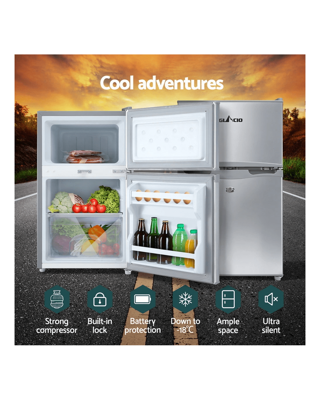 Glacio 65L Portable Fridge Freezer Bar Upright 12V/24V/240V Camping Caravan - Silver