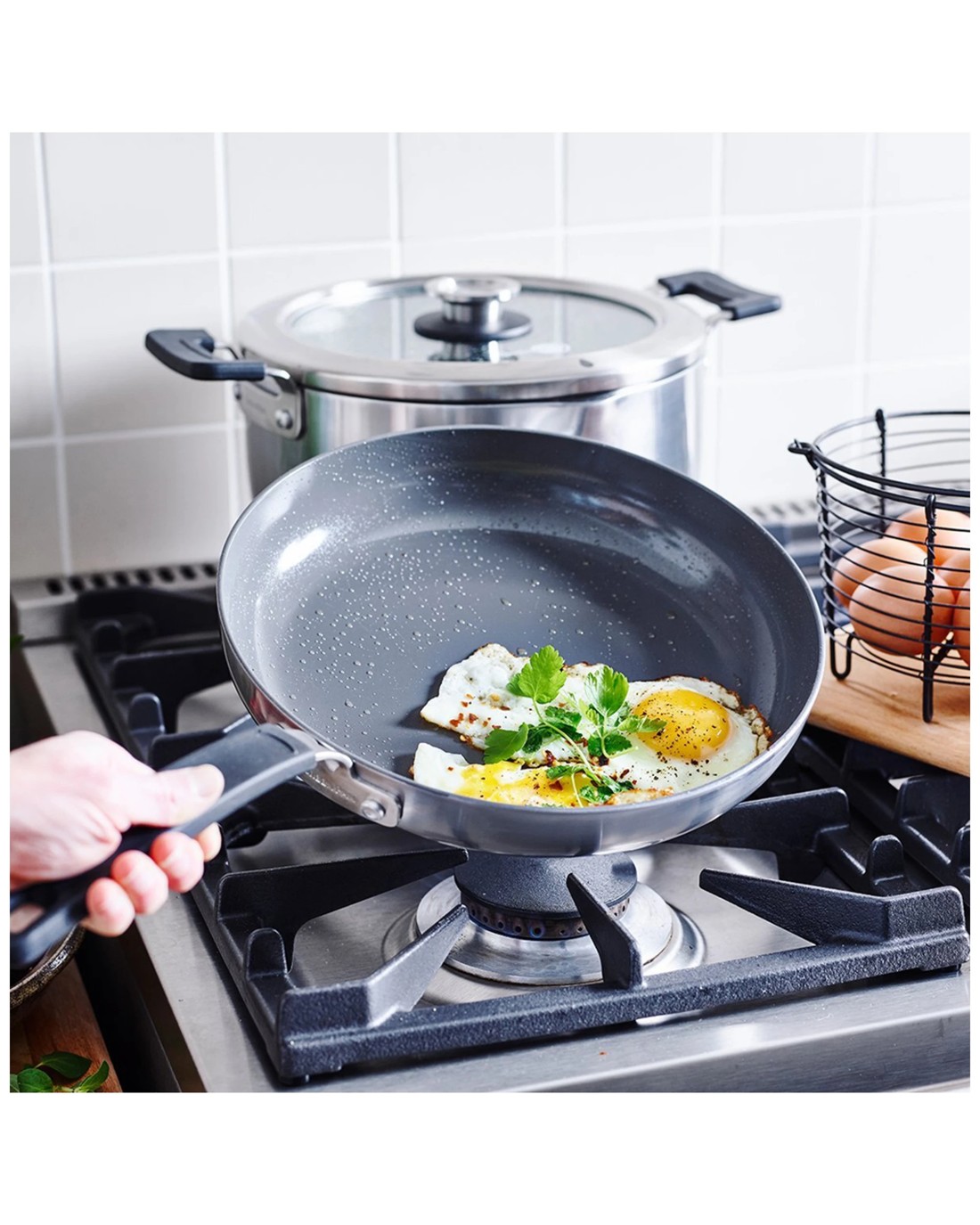 Expert space savers, the stackable Levels collection is designed to perform with healthy nonstick resilience for every meal, then give you extra room by conveniently nesting together when you’re through. Each piece features our Thermolon™ Infinity Professional, Diamond Advanced ceramic nonstick coating—our most advanced technology for expert heat transfer to deliver superior browning and sautéing for every recipe you dream up. Best of all, it’s free of PFAS, PFOA, lead, and cadmium so you don’t have to worry about it releasing toxic fumes when overheated. Designed for chefs and home cooks alike, this 15pc set is only 35cm tall when stacked, giving you back valuable cabinet space without sacrificing impressive stovetop performance. Next stop: tender lamb chops, caramelized veggies, and eggs that glide right onto your plate.