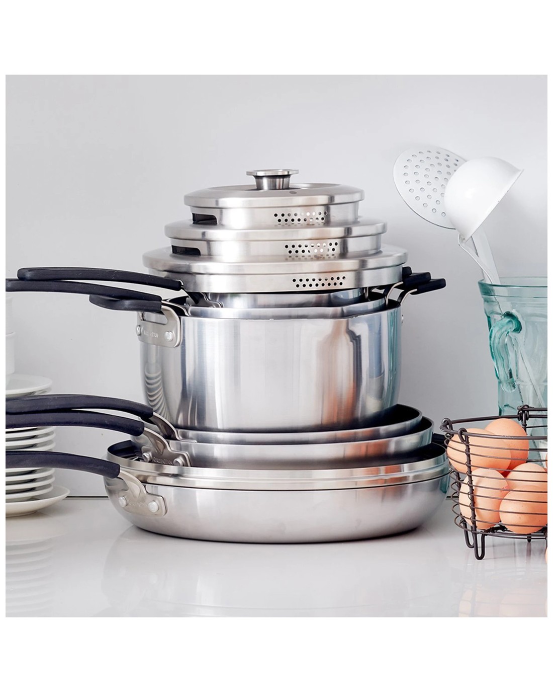 Sold by KG SuperStore11pc Greenpan Levels Stackable Tri-ply Stainless Steel Home Kitchen Cooking Set - Silver