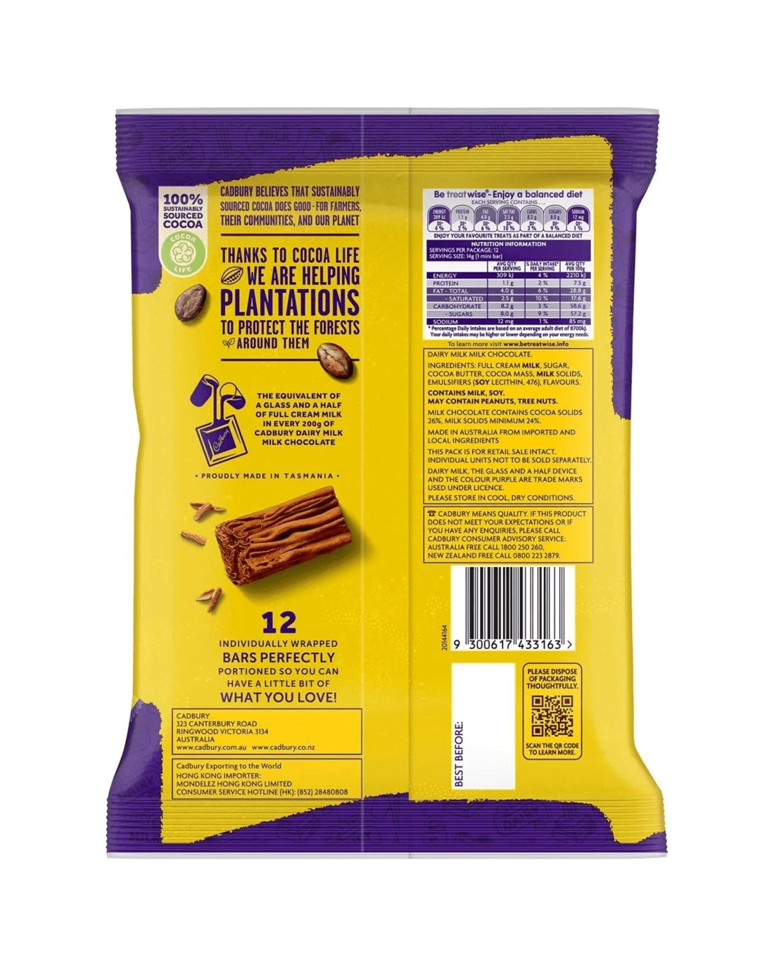 12 Cadbury Dairy Milk milk chocolate treats perfect for sharing or snacking! Cadbury Dairy Milk milk chocolate is Australia's favourite chocolate.
