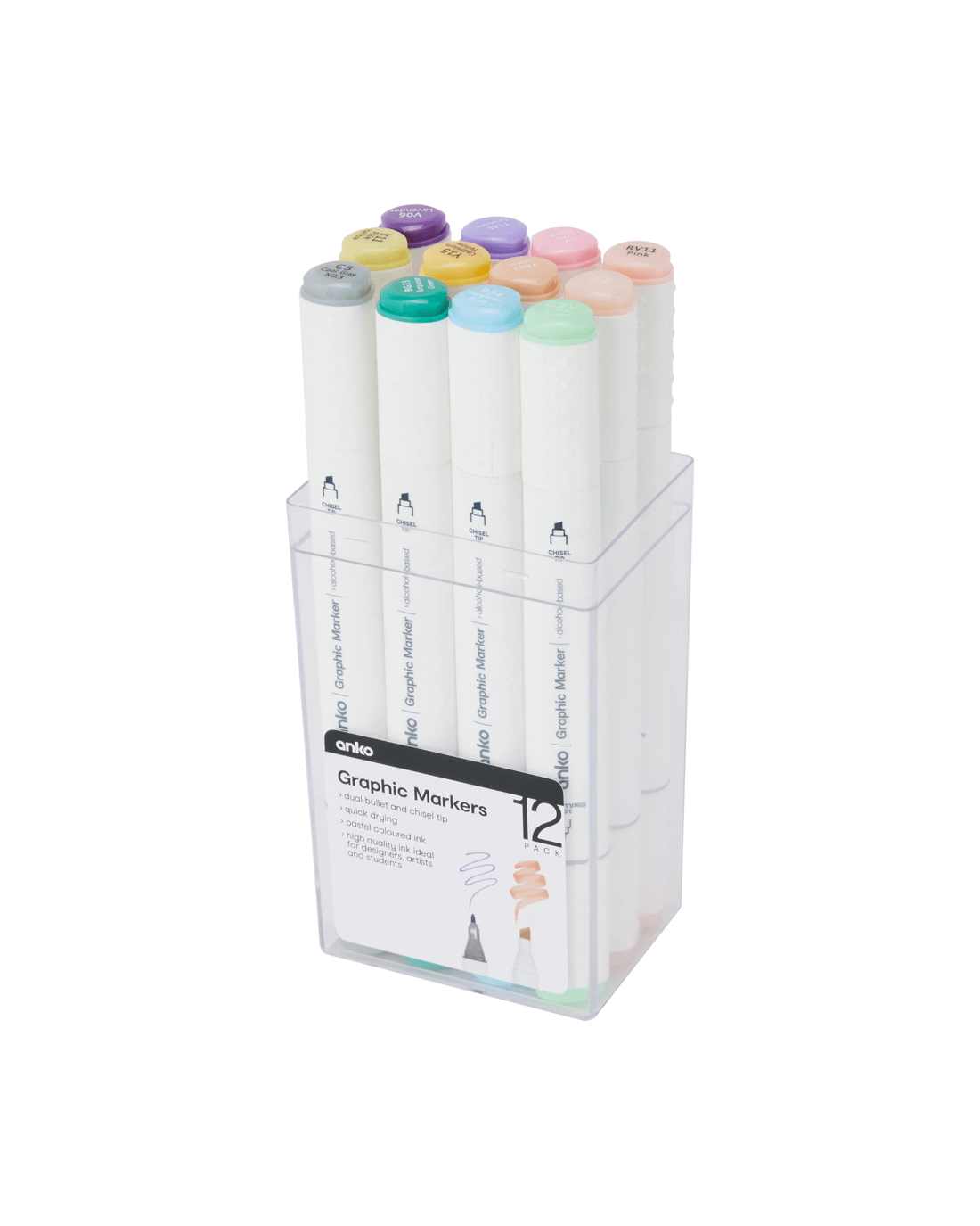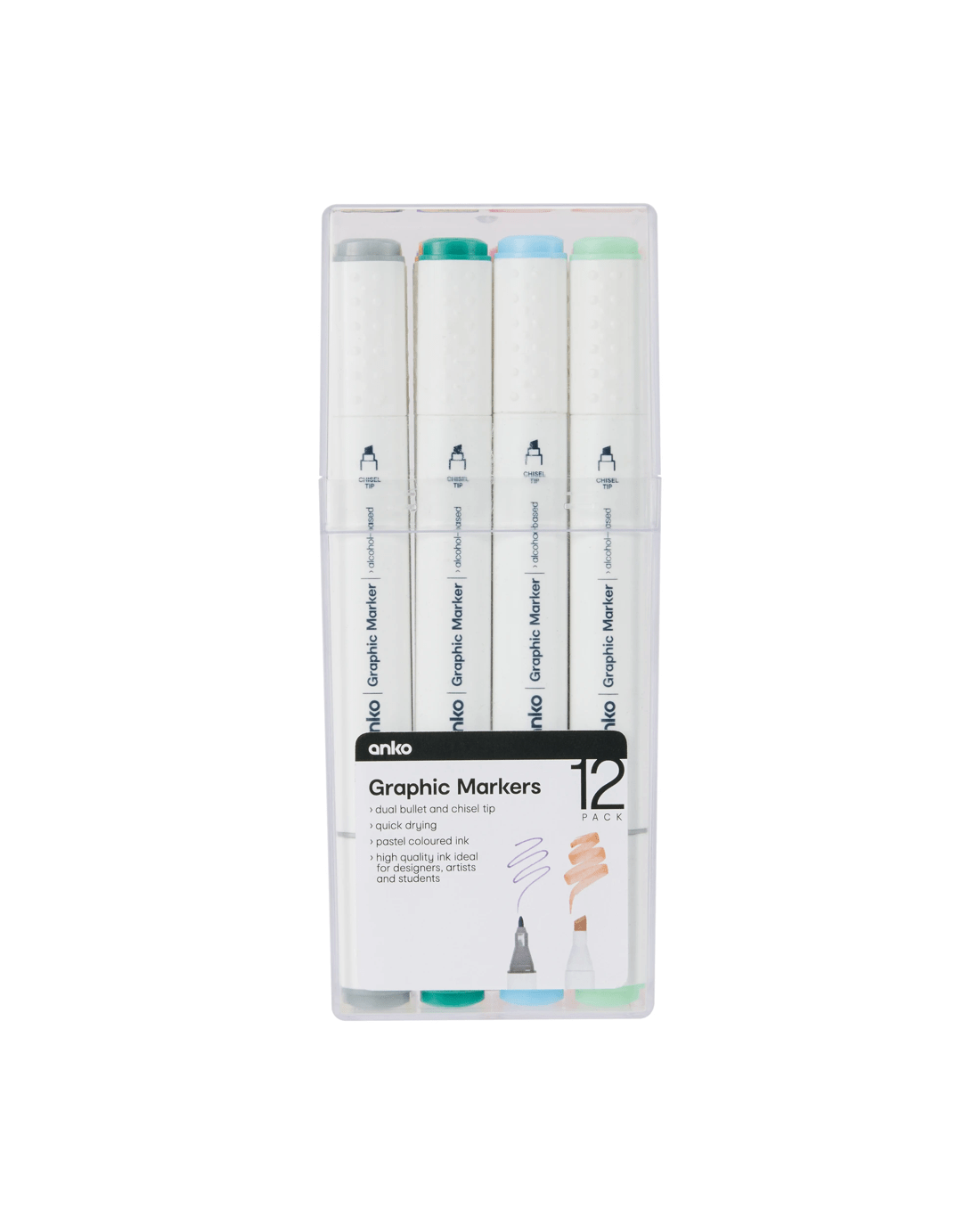 12 Pack Dual Tip Graphic Markers - Pastel