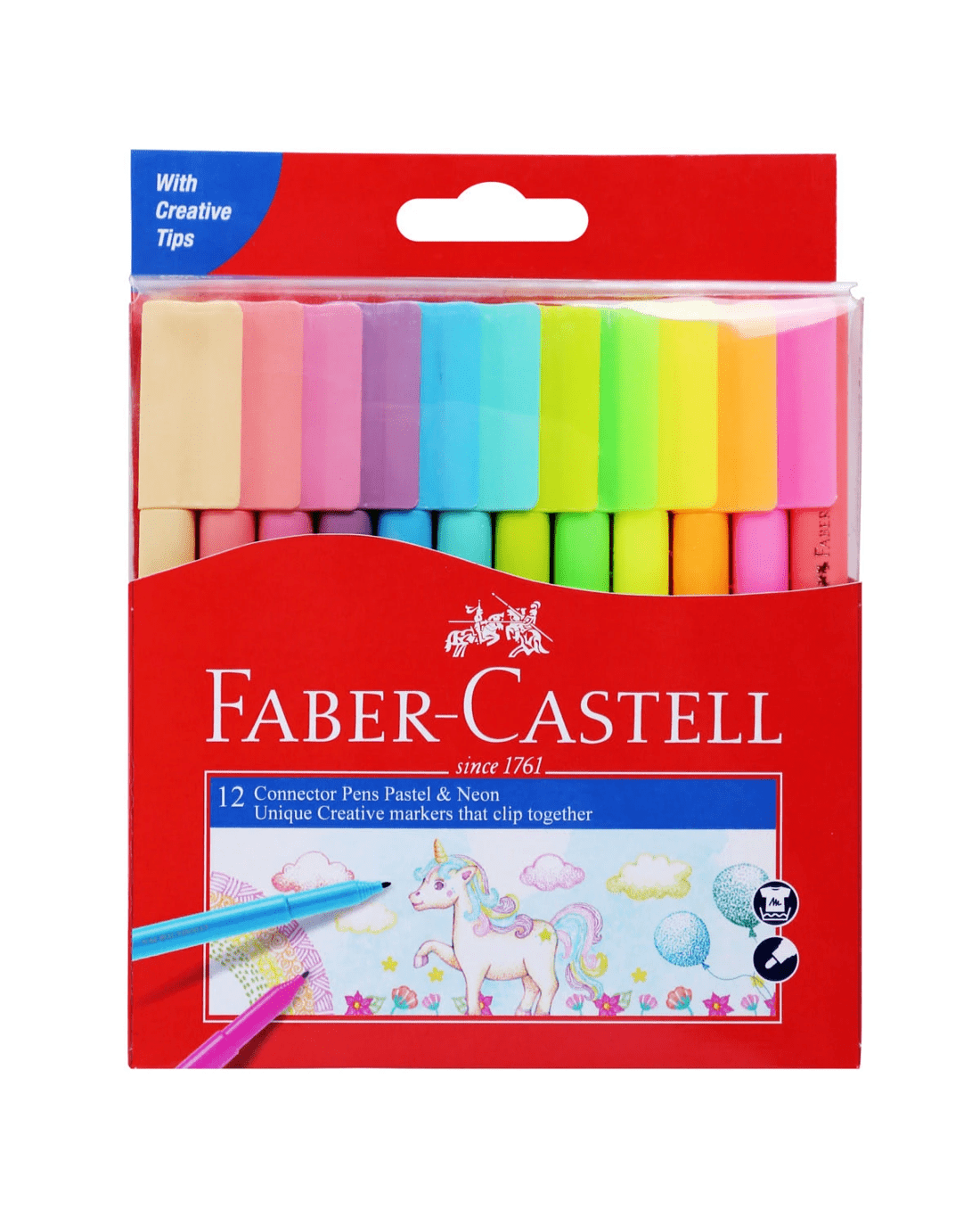 Colour, craft and create with Faber-Castell Connector Pens! Bursting with colour, these felt-nib pens feature special connector caps that clip together for easy storage and inspire imaginative building and playing.