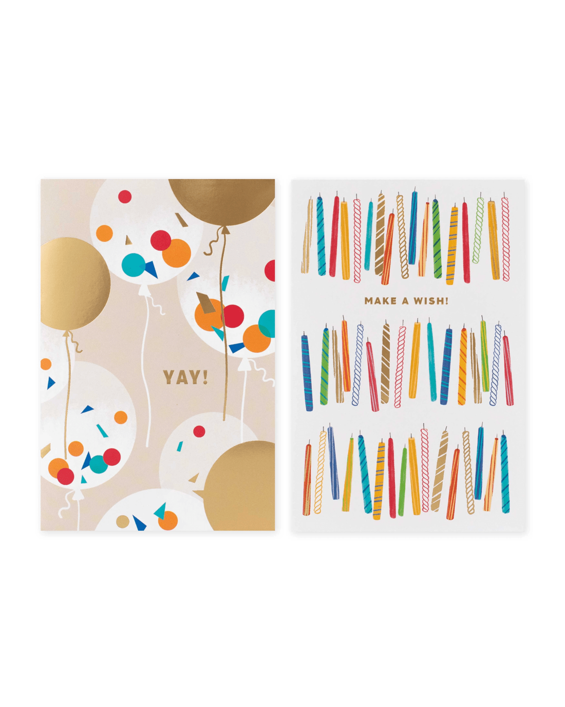 • The front of design two features an illustrative birthday candle design, gold foil highlights, with the message 'MAKE A WISH!'