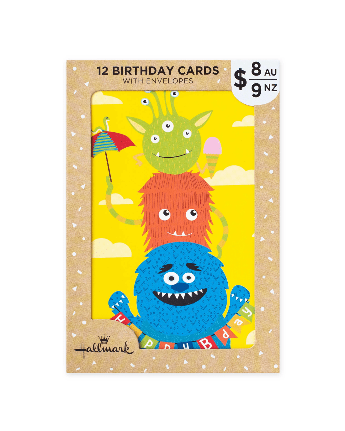Sold by Kmart12 Pack Hallmark Kids Birthday Cards - Fun Colourful Monsters!