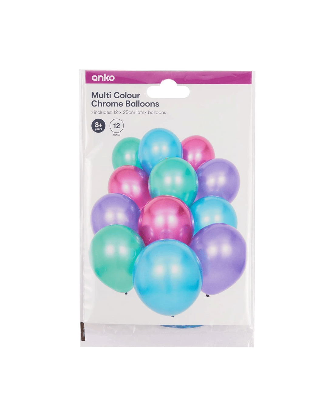 Sold by Kmart12 Pack Multi Coloured Chrome Balloons
