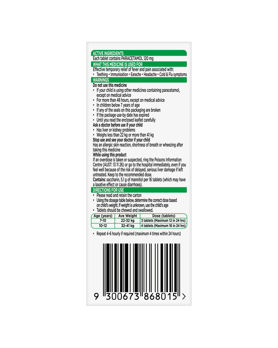 Sold by Kmart12 Pack Panadol Children Chewable Paracetamol 120mg - Cherry Flavour