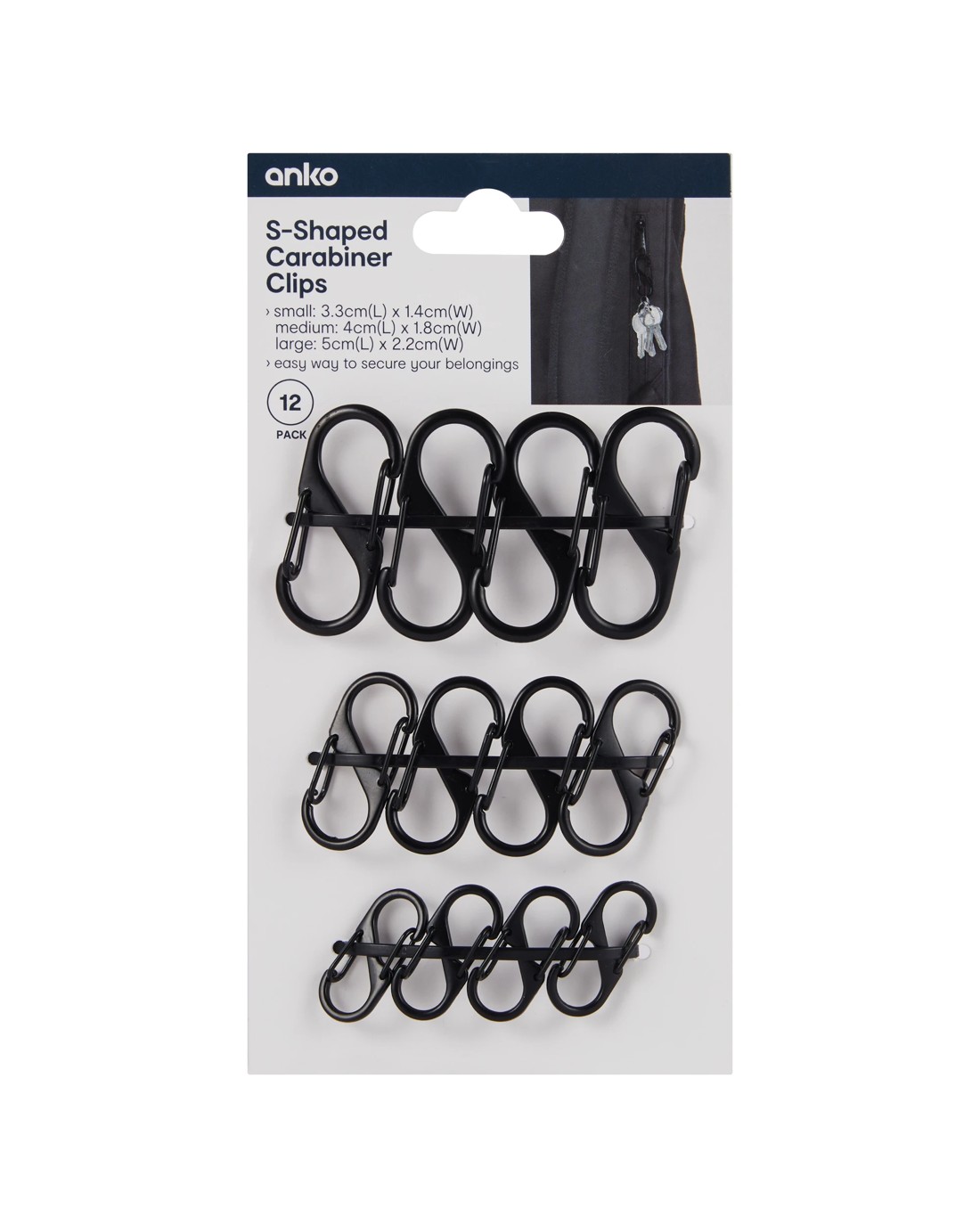 The S‑Shaped Carabiner Clips come in a pack of 12 and are ideal for organising and securing your essential items. They are versatile and easy to use for everyday needs, whether you're on the go or travelling.